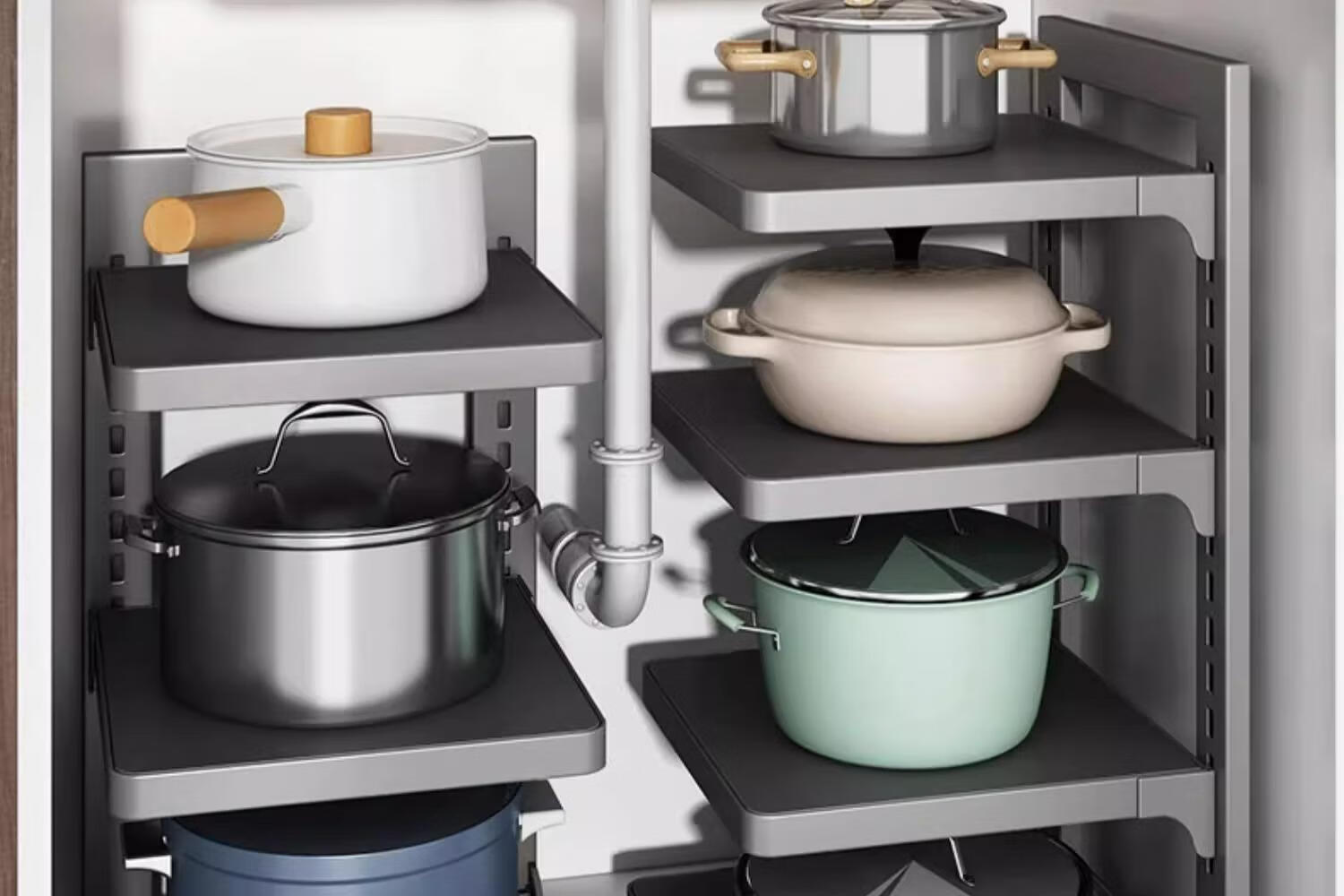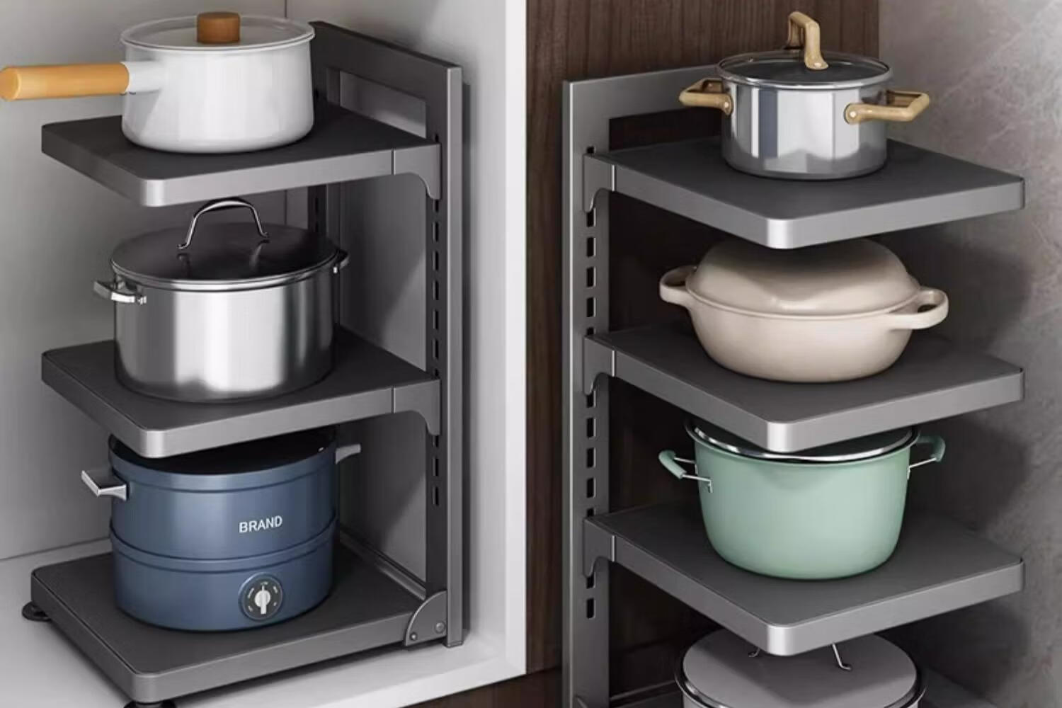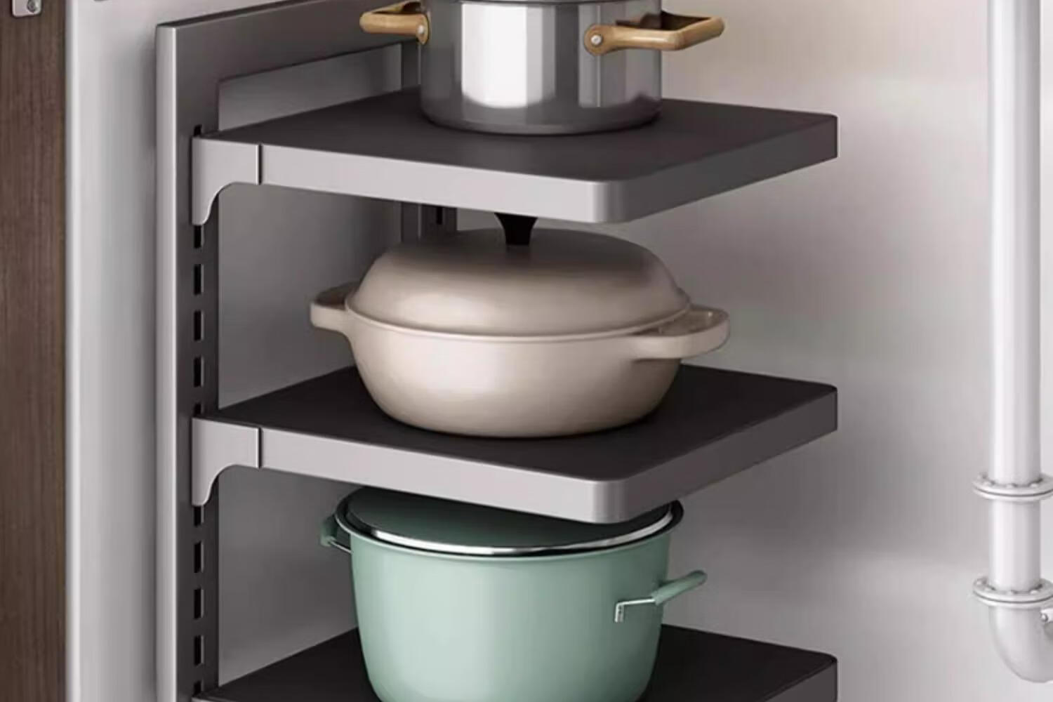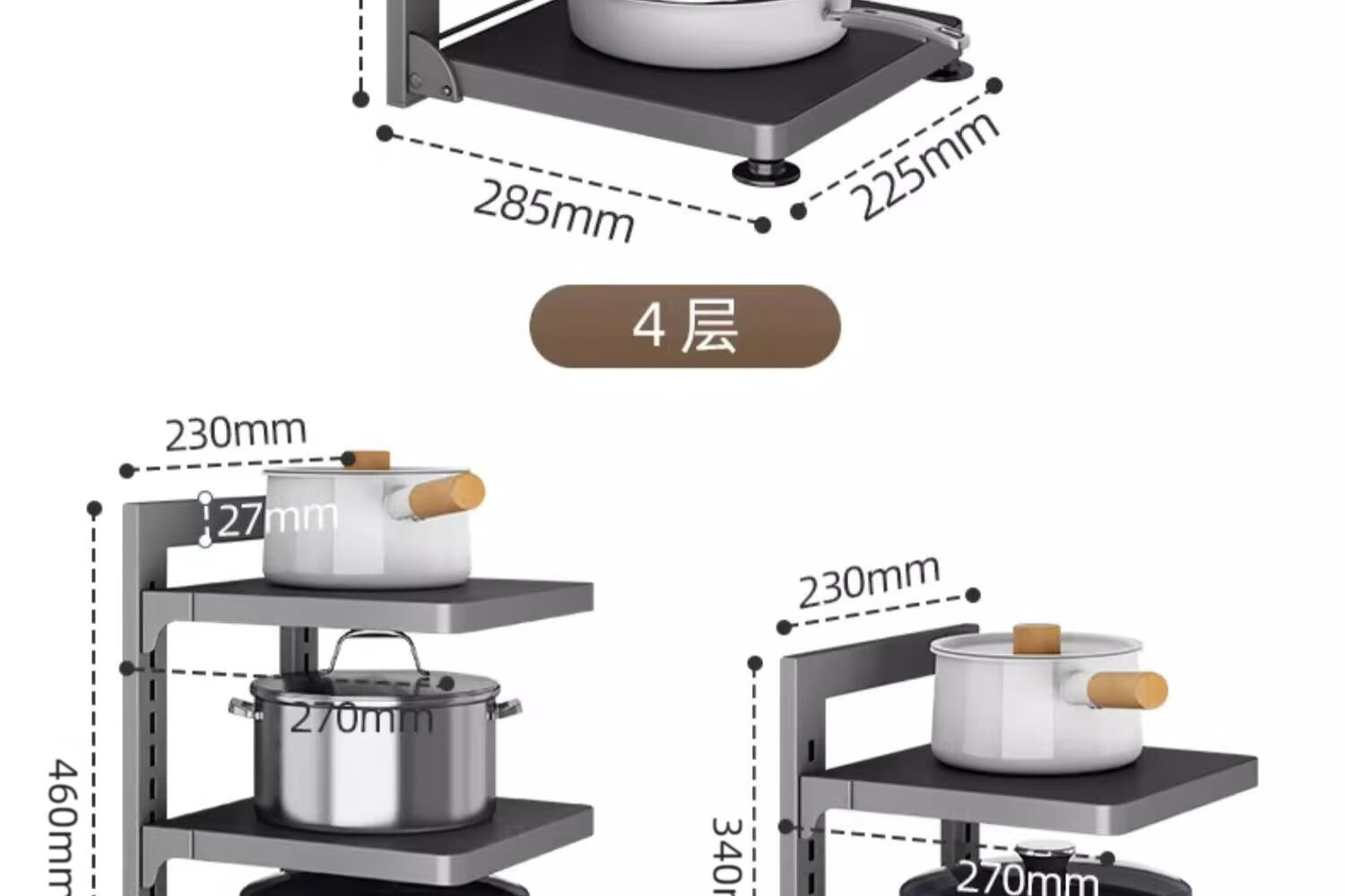 Youqin gun ash kitchen pot storage rack multi-layer storage rack in the cabinet layered under the sink countertop multi-functional pot rack
