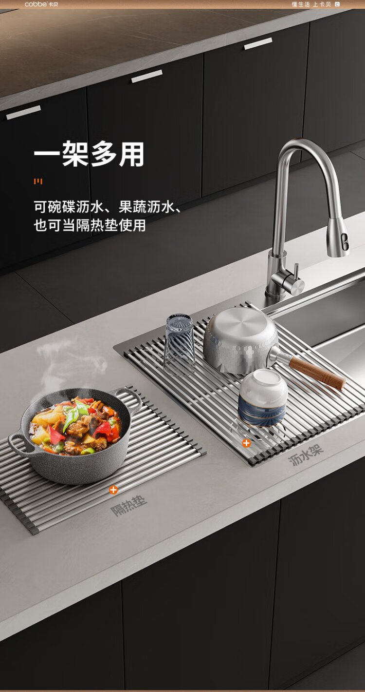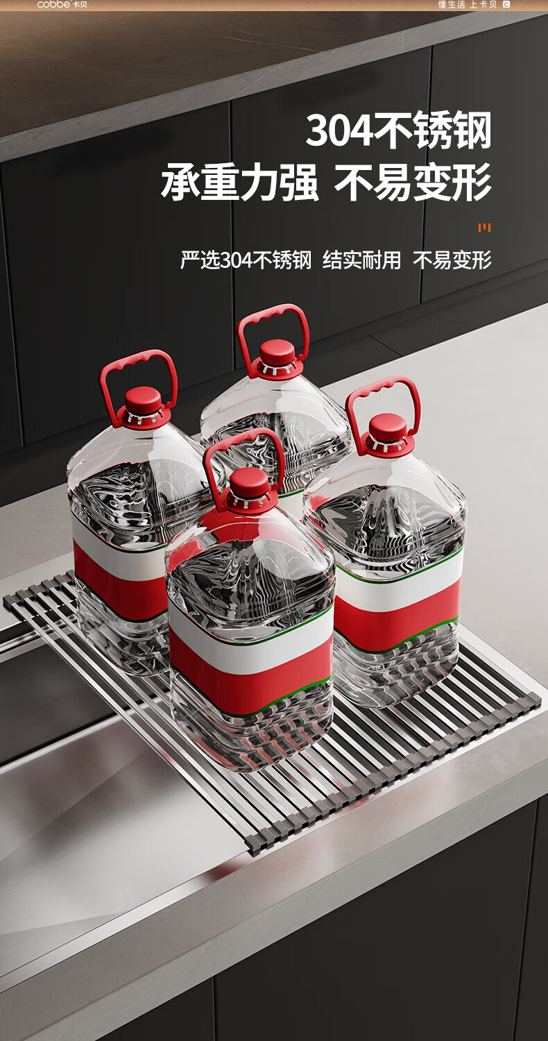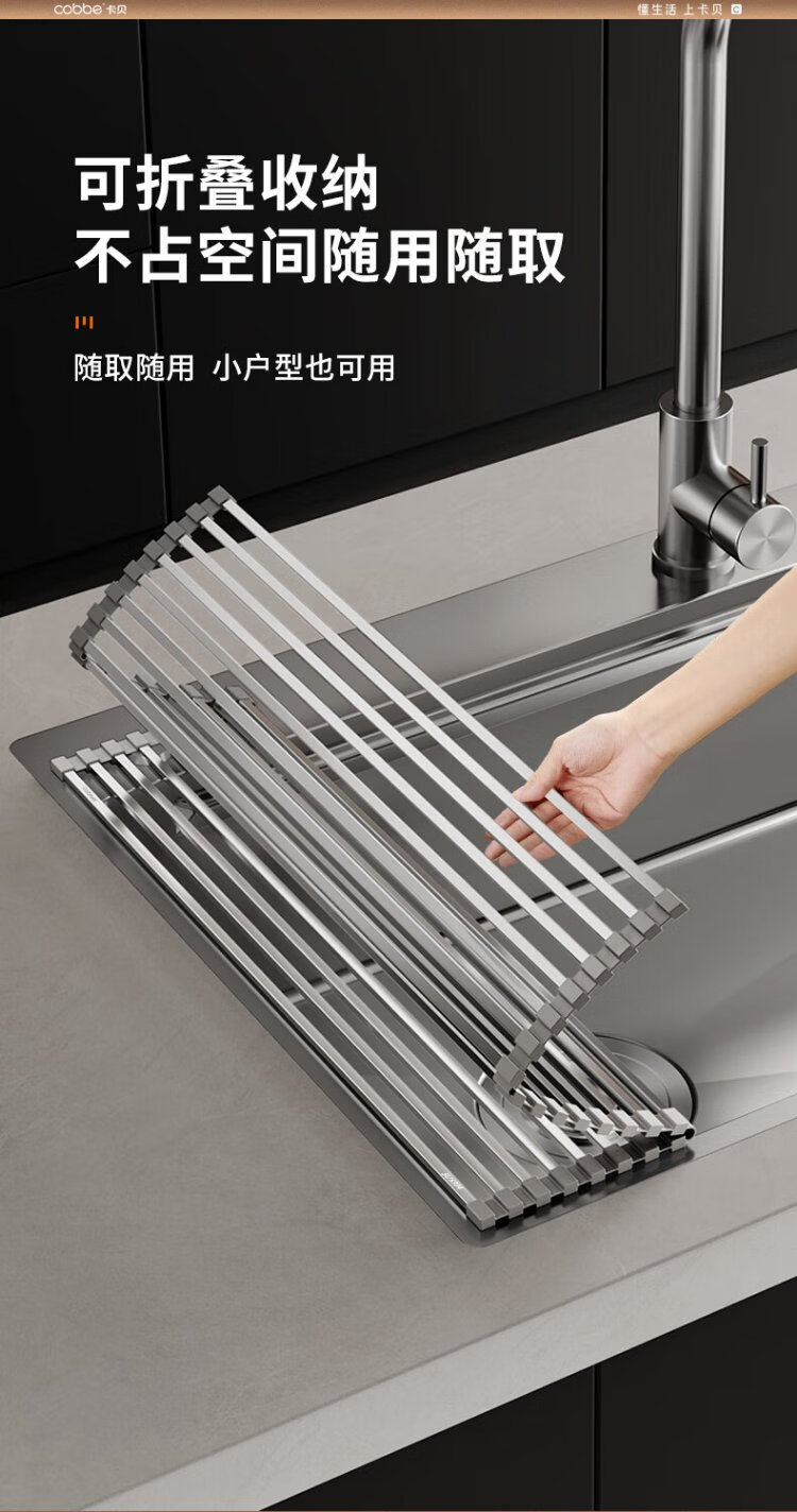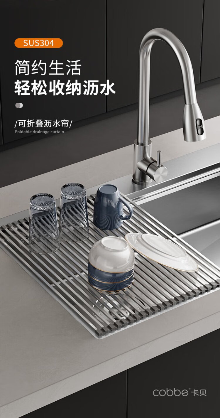 Cobbe 304 stainless steel drain rack sink foldable drain curtain wash basin dish fruit and vegetable washing basket storage rack