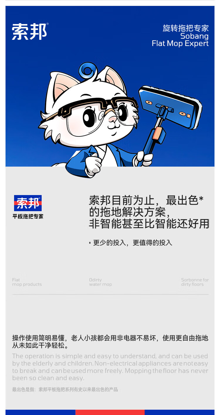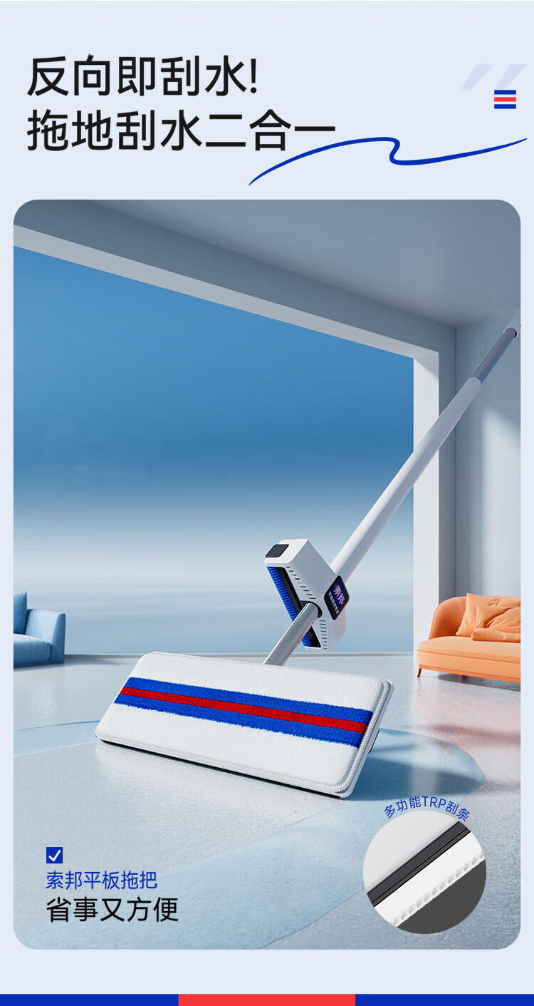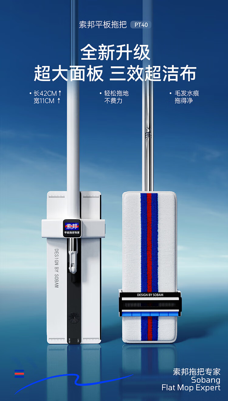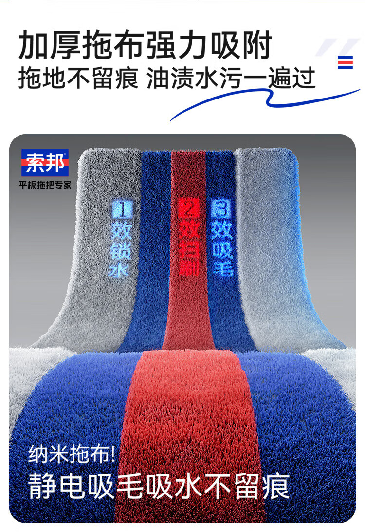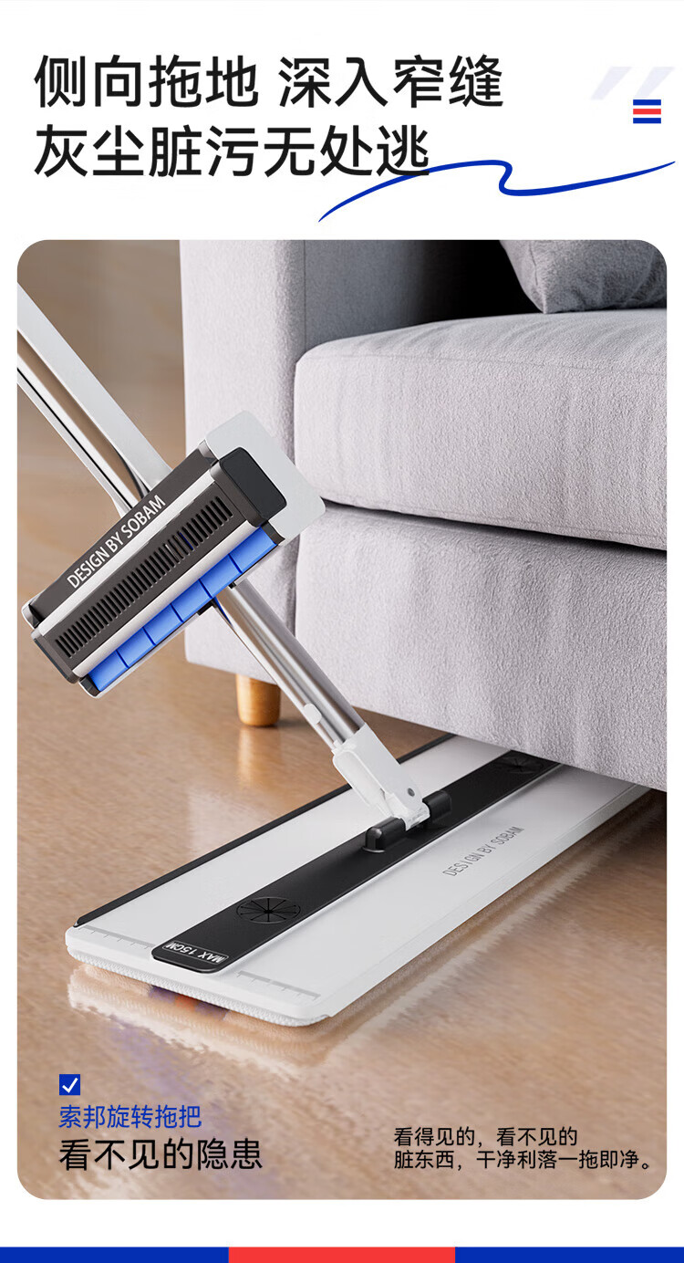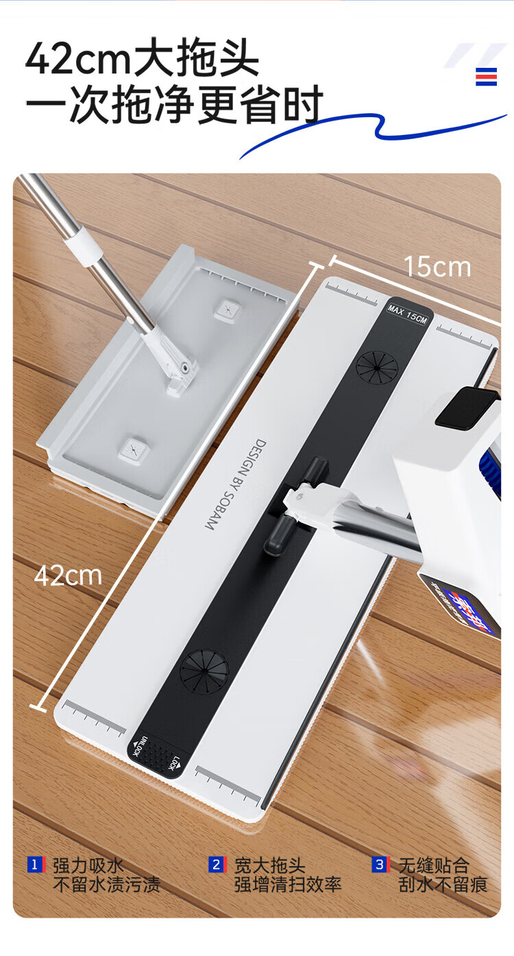 Sorbonne flat mop 42cm2 cloth household one-mop hand-washable mop artifact lazy mop mop mop