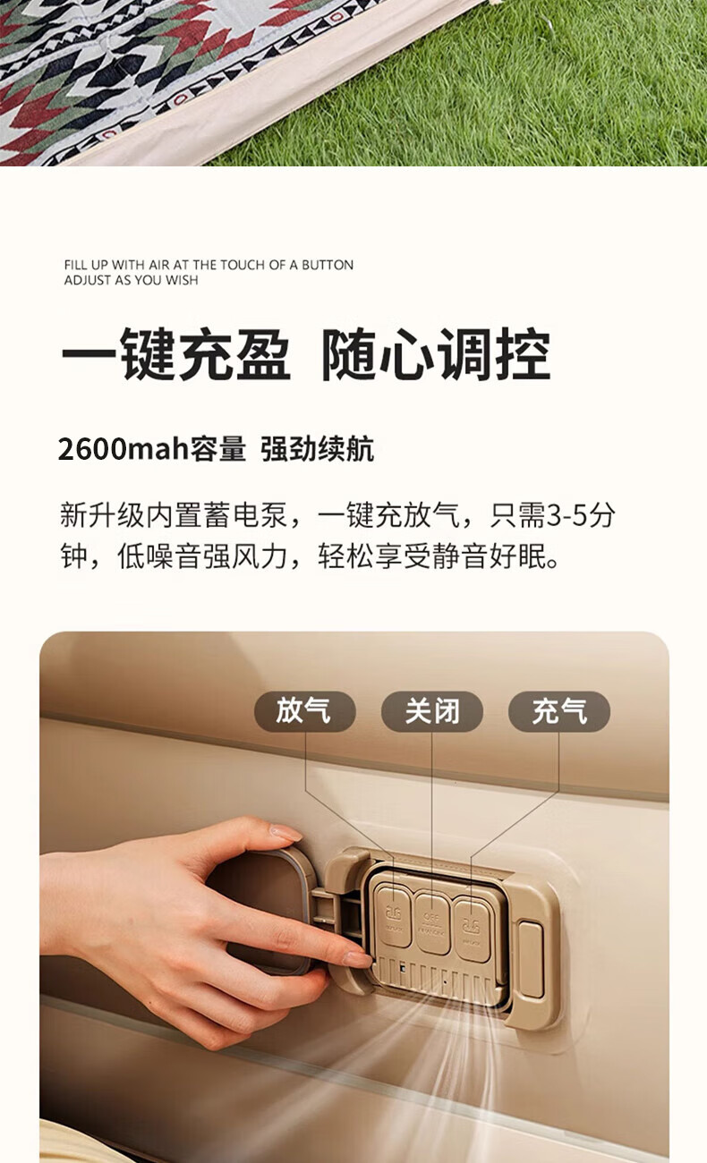 Huihecheng air mattress outdoor camping automatic inflatable moisture-proof mattress household air mattress portable folding lunch break companion for three people