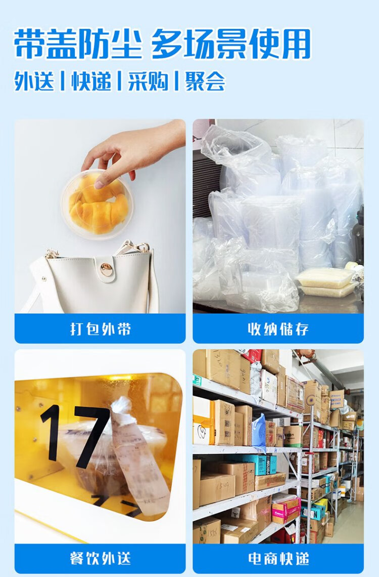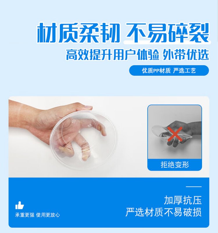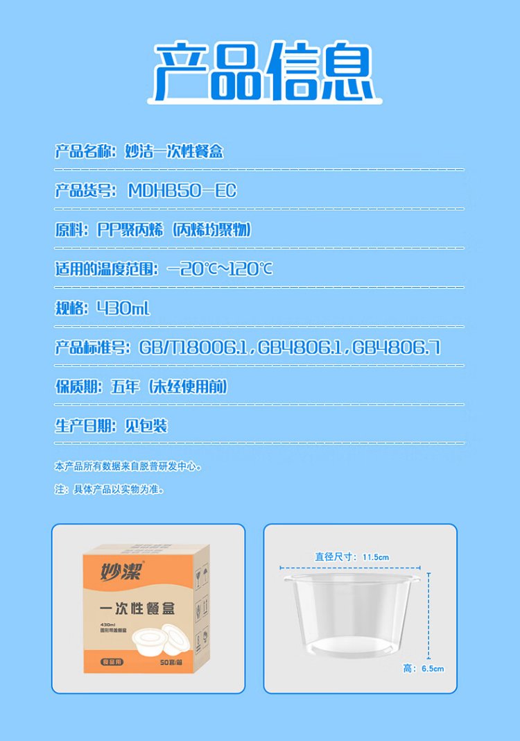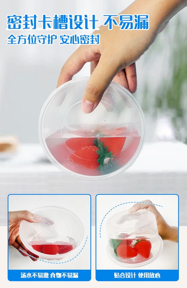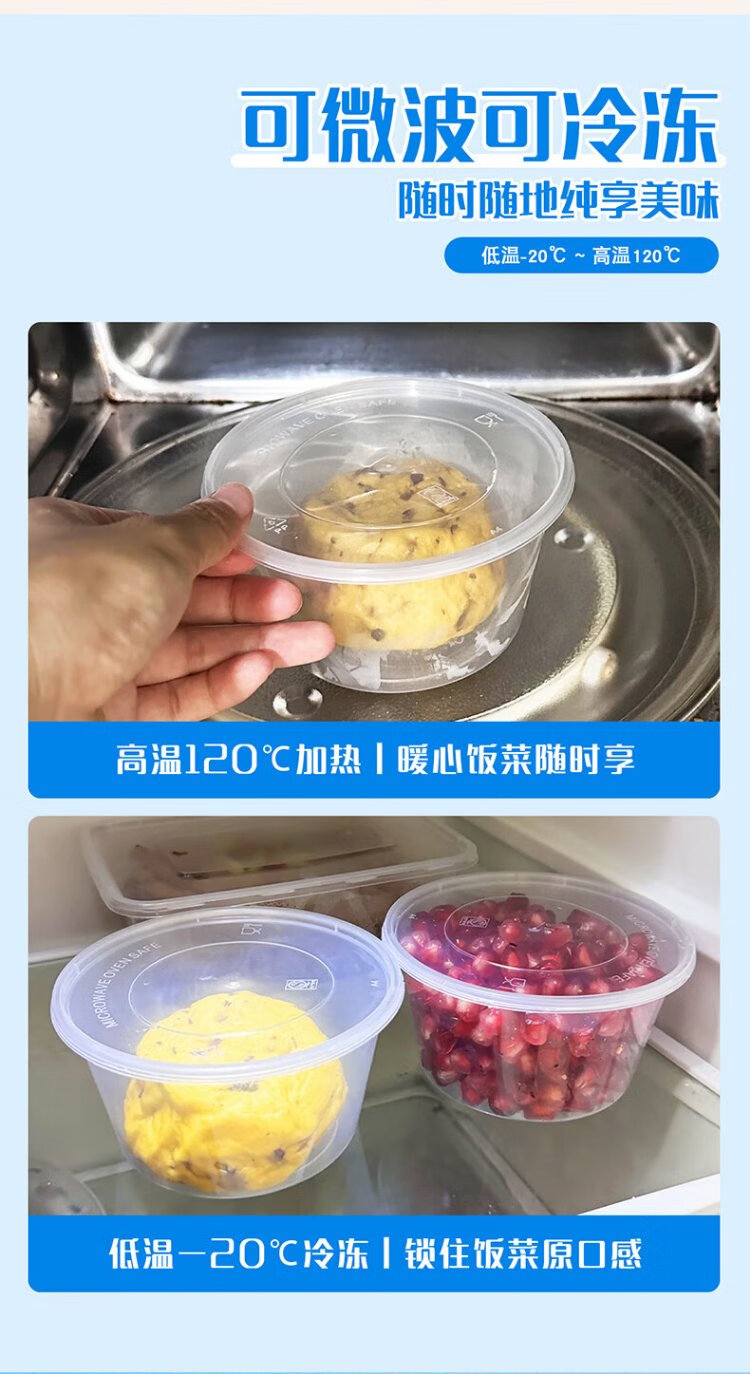 Miaojie disposable lunch box, round with lid 430ml*50 pieces, food-grade picnic packed soup bowls and chopsticks, microwaveable