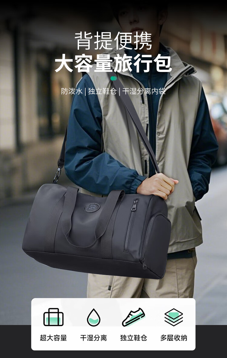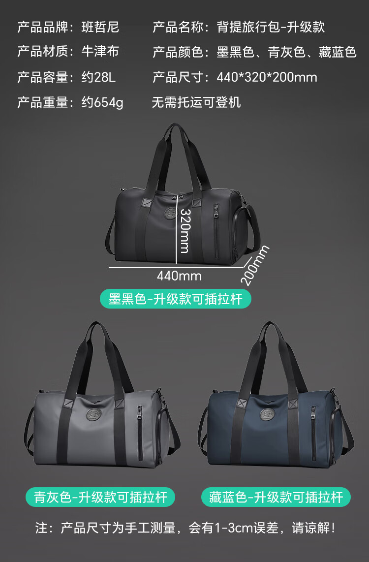 Banzheni travel bag for men and women, large capacity, pull-rod suitcase storage, maternity bag, business trip, diagonal carry-on luggage bag