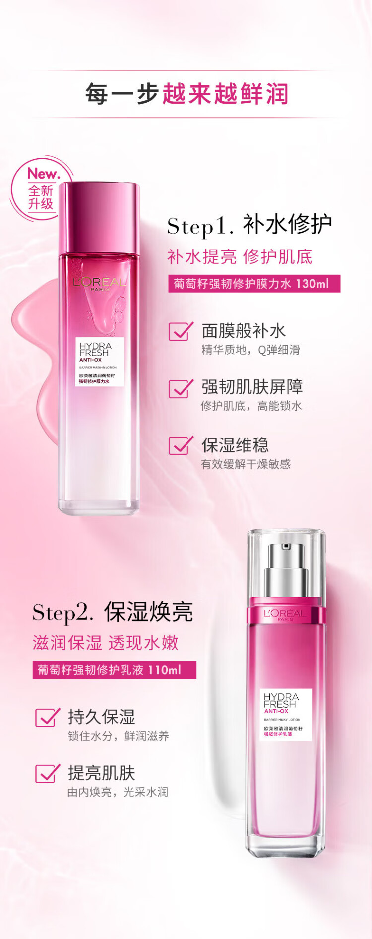 L'Oreal Grape Seed Water 130ml + Milk 110ml Set Autumn and Winter Moisturizing and Brightening Skin Care Products