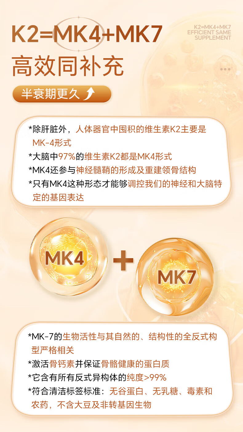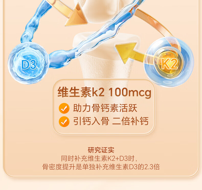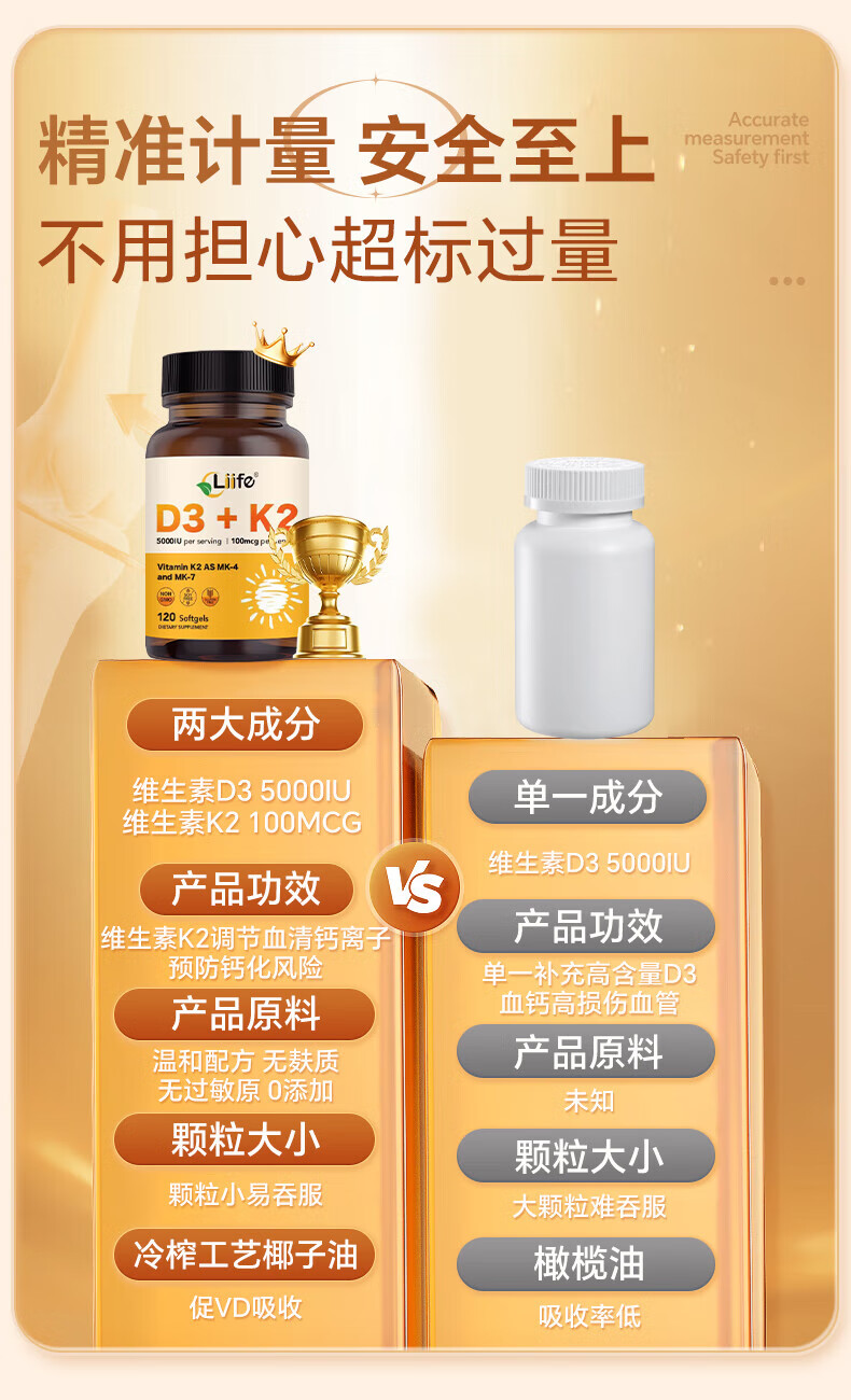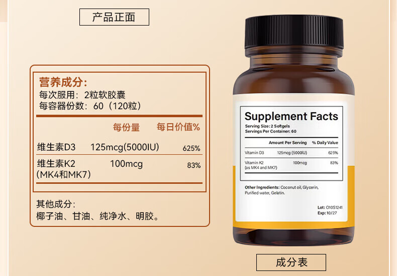 Liife US imported sunshine vitamin D3+K2 capsule bottle 5000IU two plus magnesium three-in-one MK7 adult 120 capsules