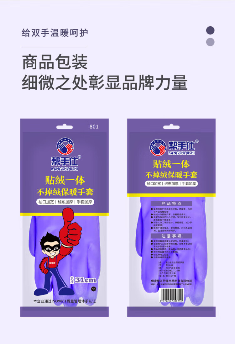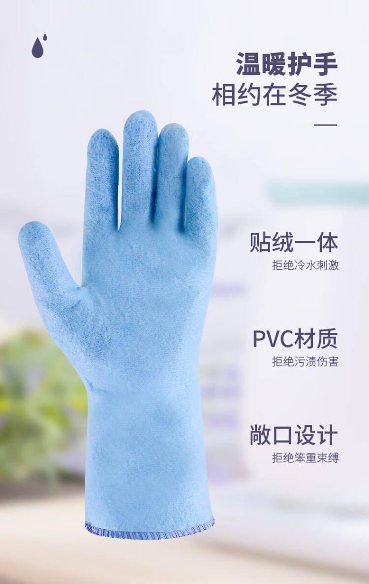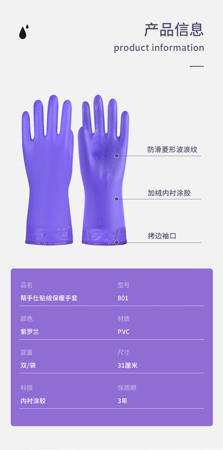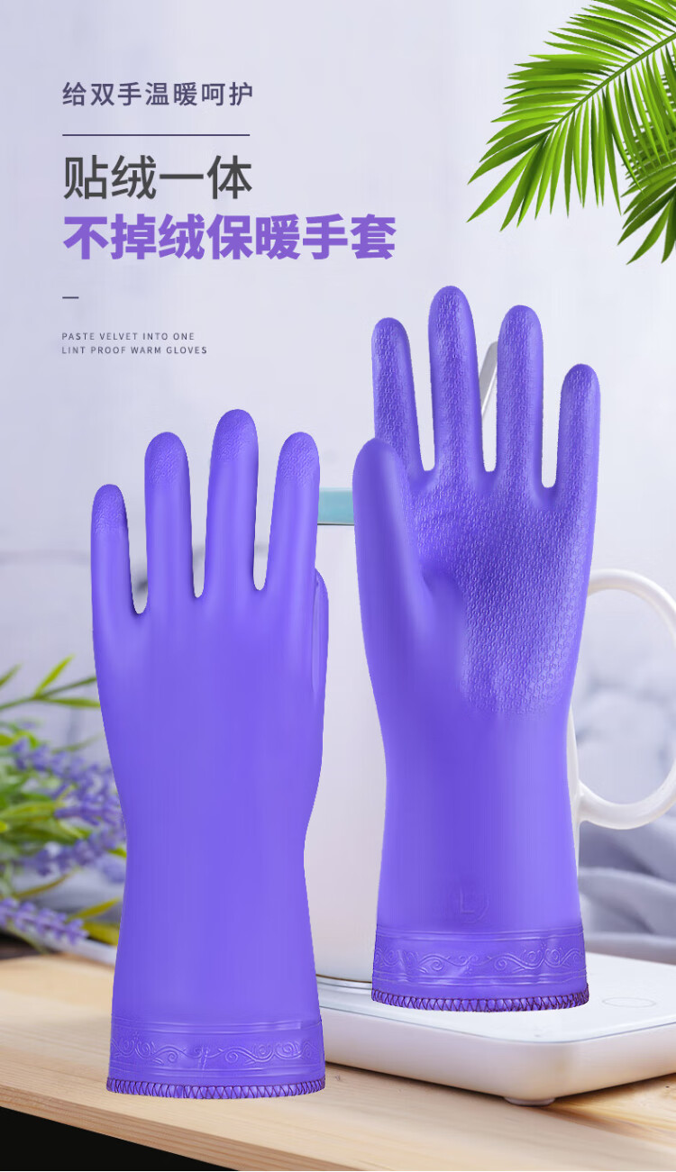 Bangshoushi rubber leather gloves labor protection 3 pairs PVC velvet thickened waterproof and oil-proof dishwashing cleaning winter warm protection 801