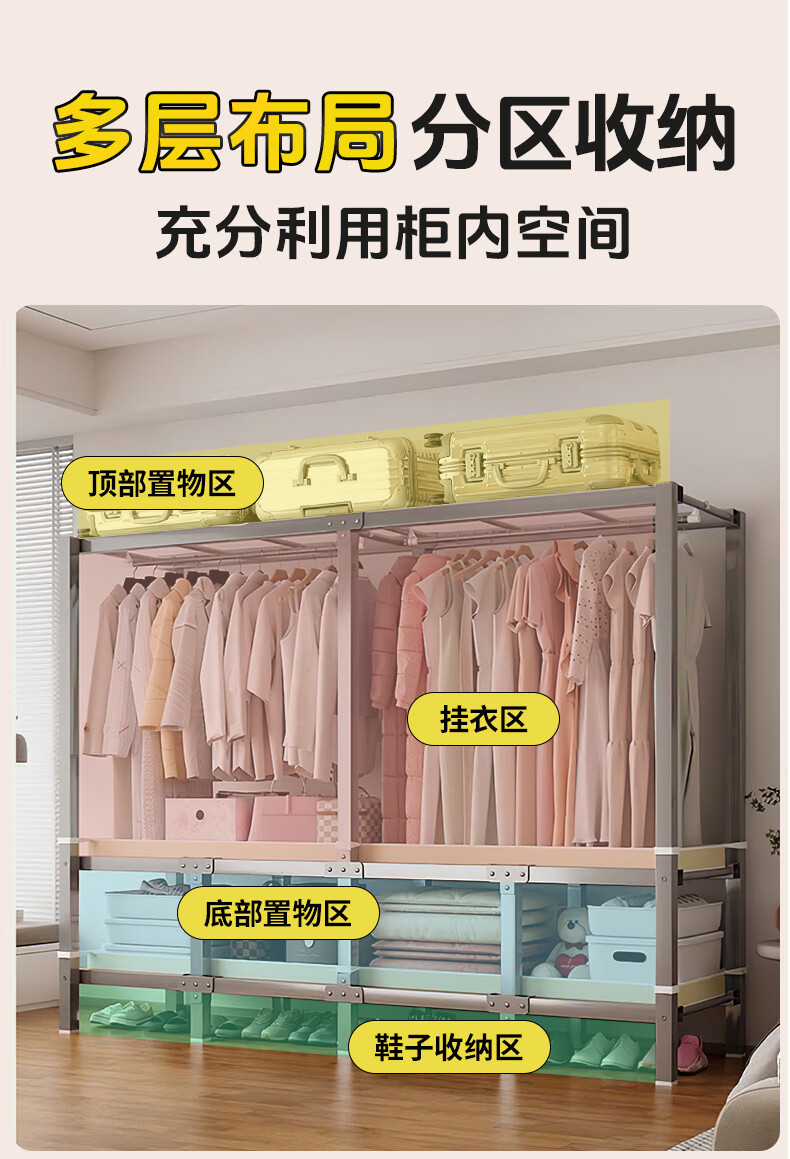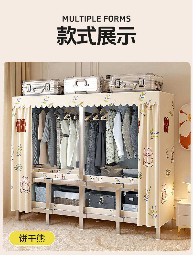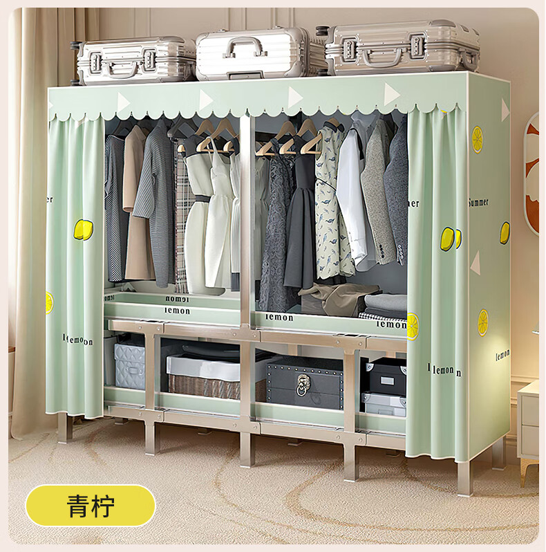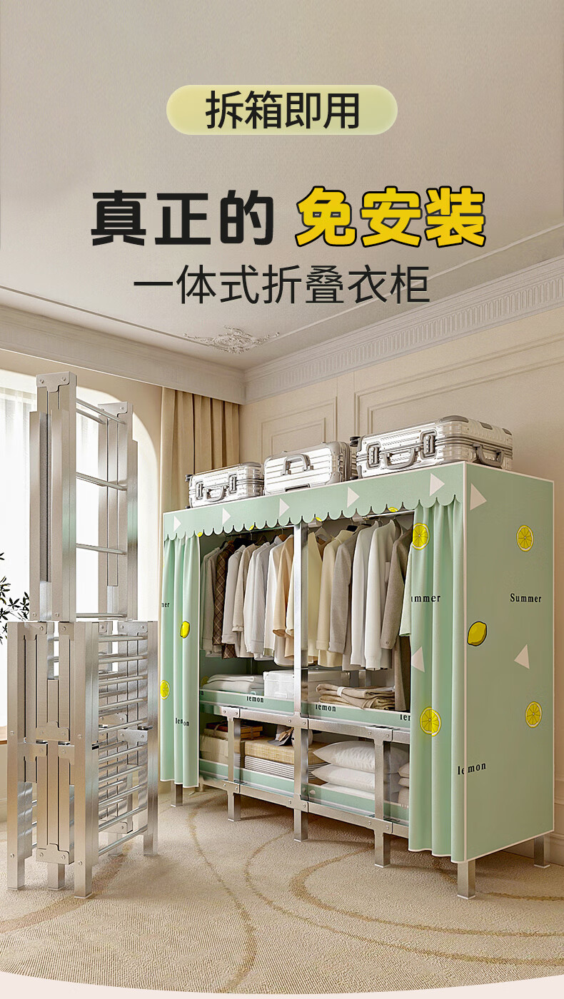 Quanzinwu installation-free simple wardrobe bedroom 2025 new modern rental house folding one-piece cloth wardrobe Lime 210