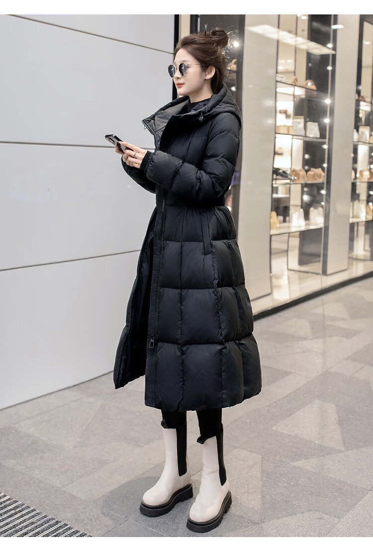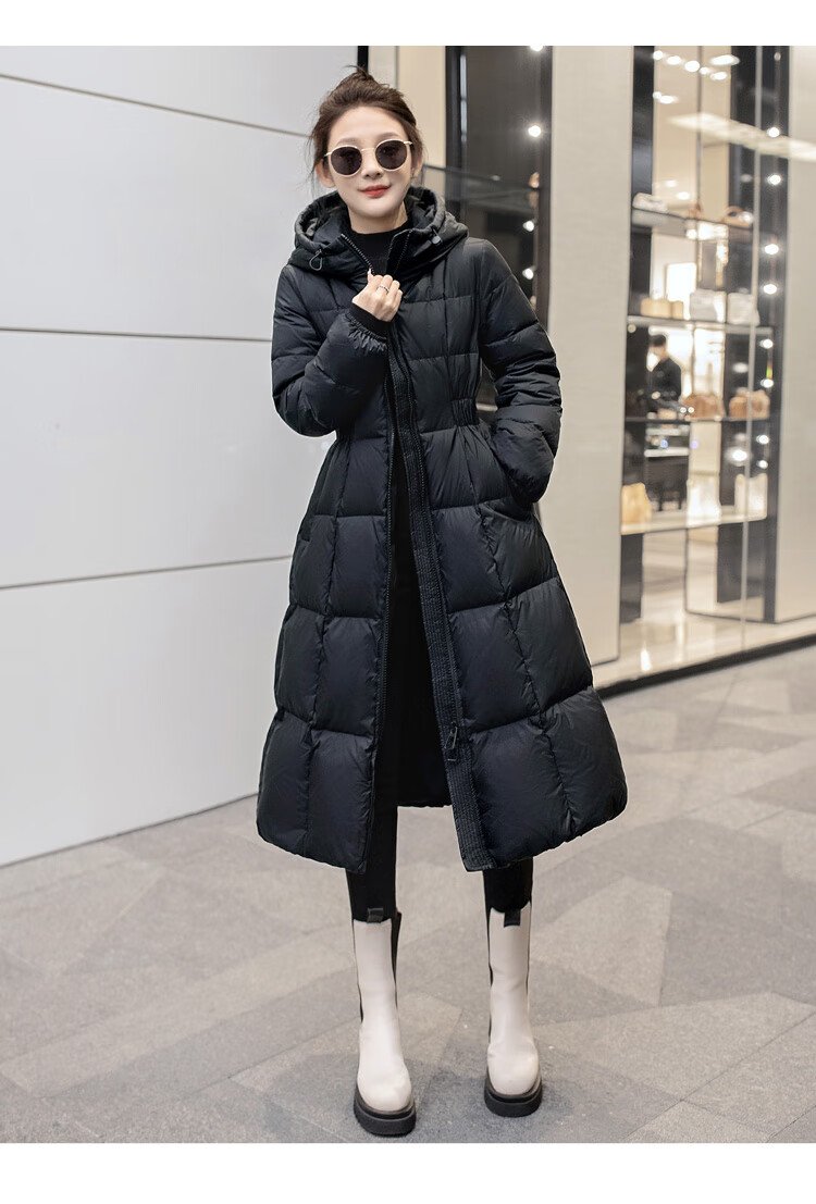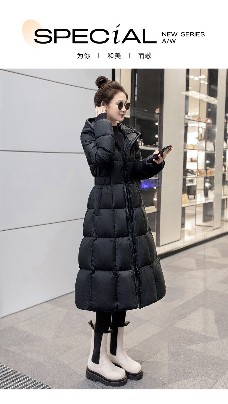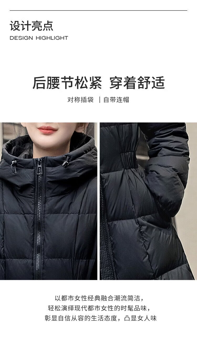 Sibaishe mid-length down jacket 2025 winter new women's hooded waist slimming thickened jacket
