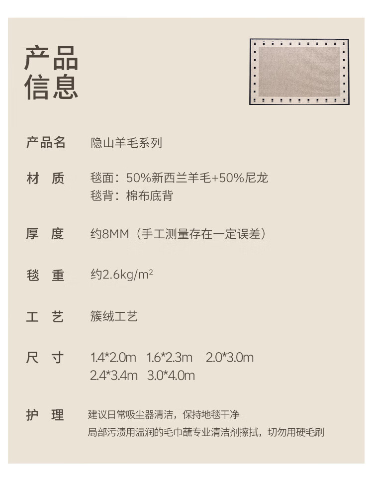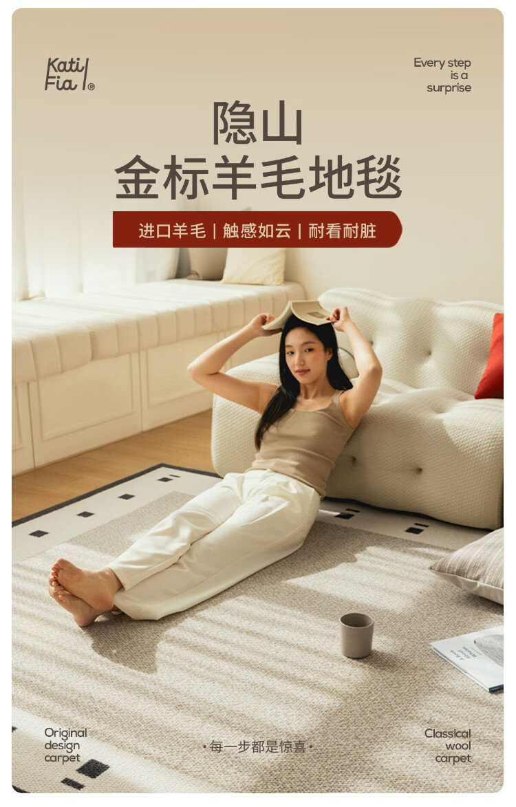 Cartifiya carpet living room imported wool non-slip light luxury high-end sofa bedroom blanket Yinshan-wool 2.4*3.4 meters