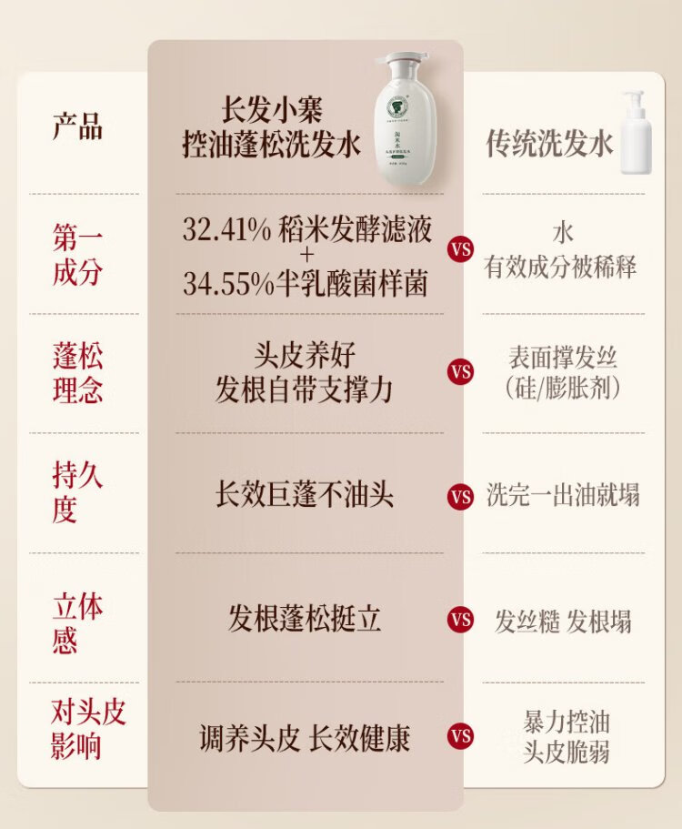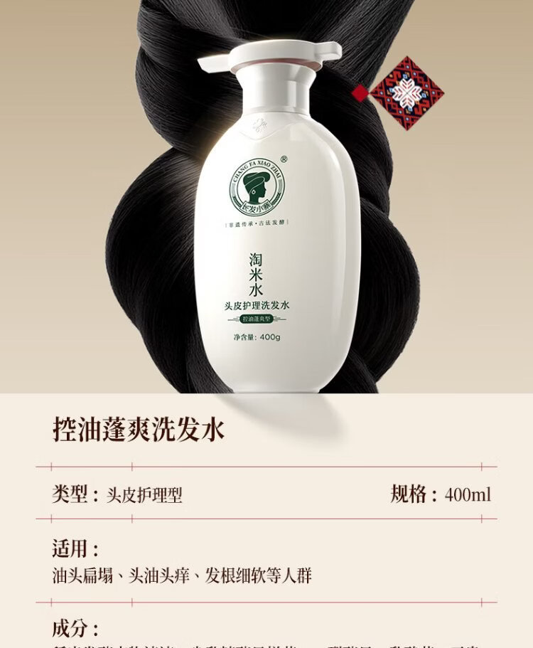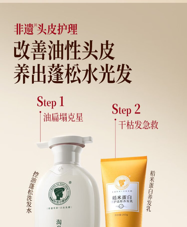 Changfa Xiaozhai Intangible Cultural Heritage Oil Control Fluffy Shampoo Rice Water Fluffy Shampoo Anti-dandruff Anti-itching Hair Care for Men and Women