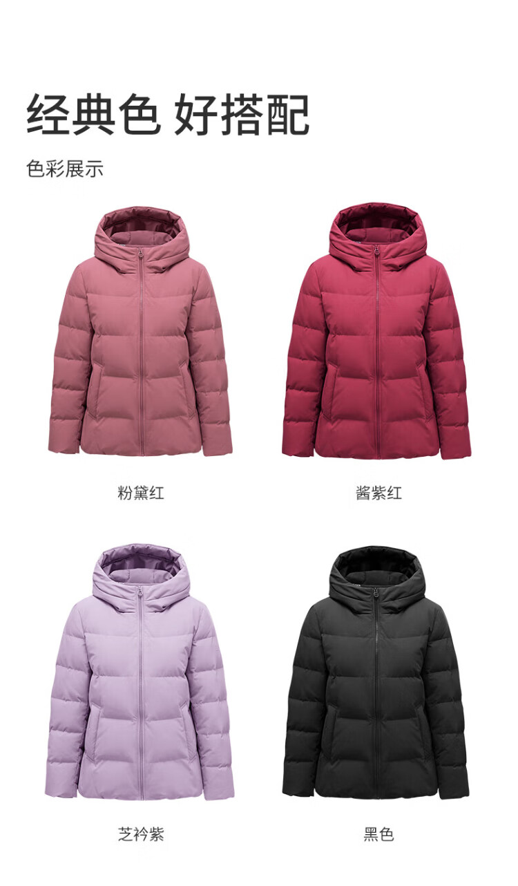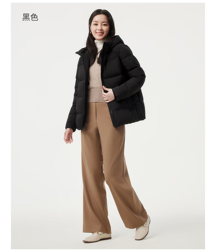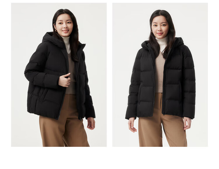 Tambor Down Jacket Women's Short Autumn and Winter Hooded Loose Warm Women's Jacket Thick 510356Z Black 170
