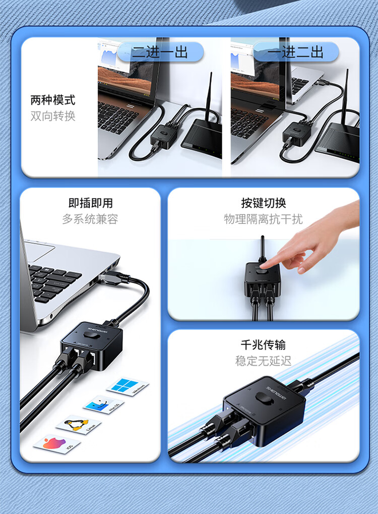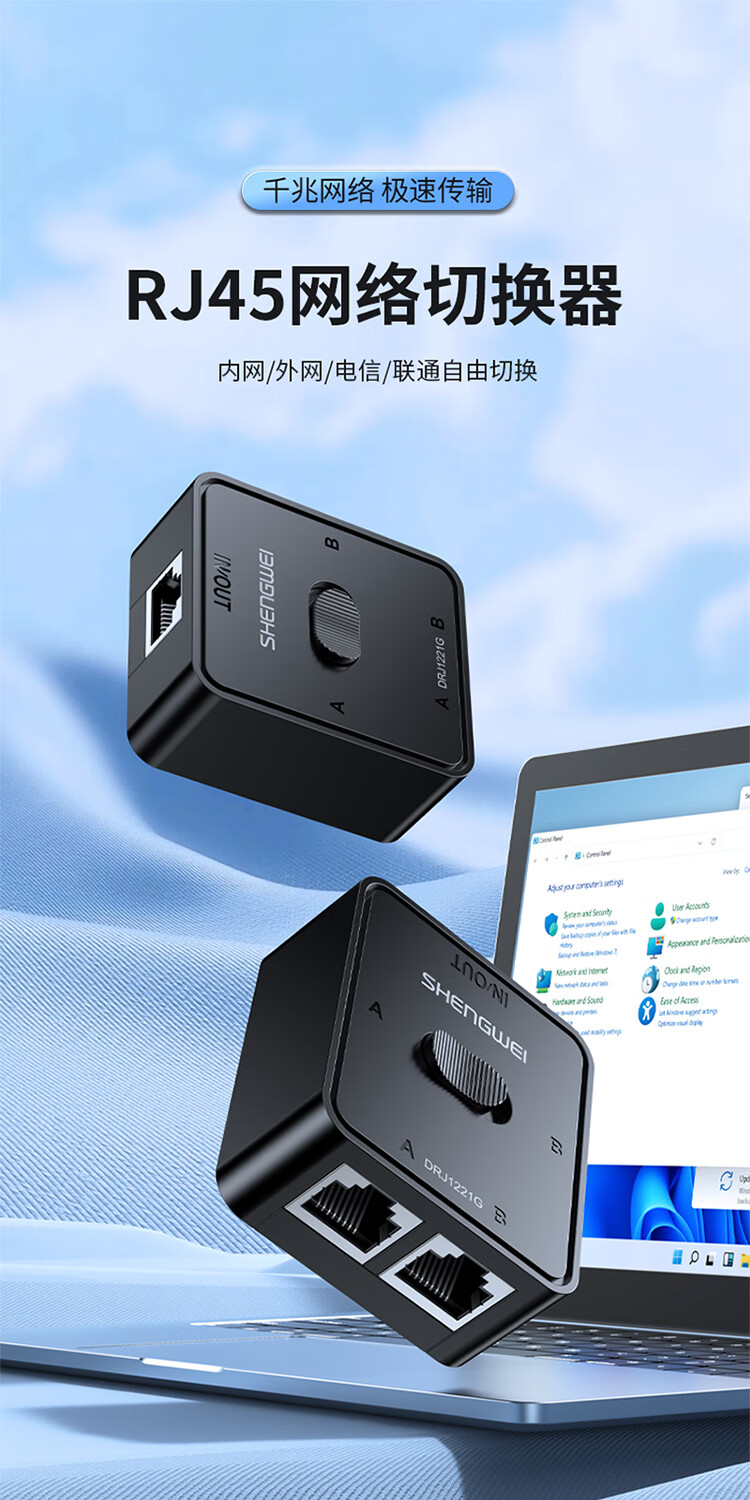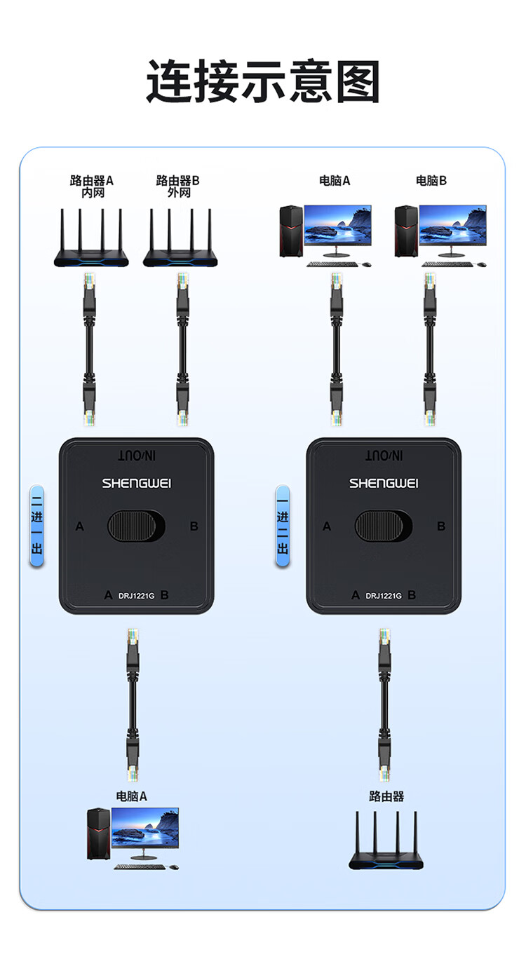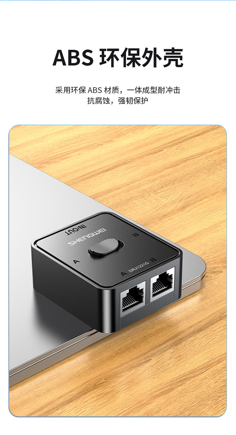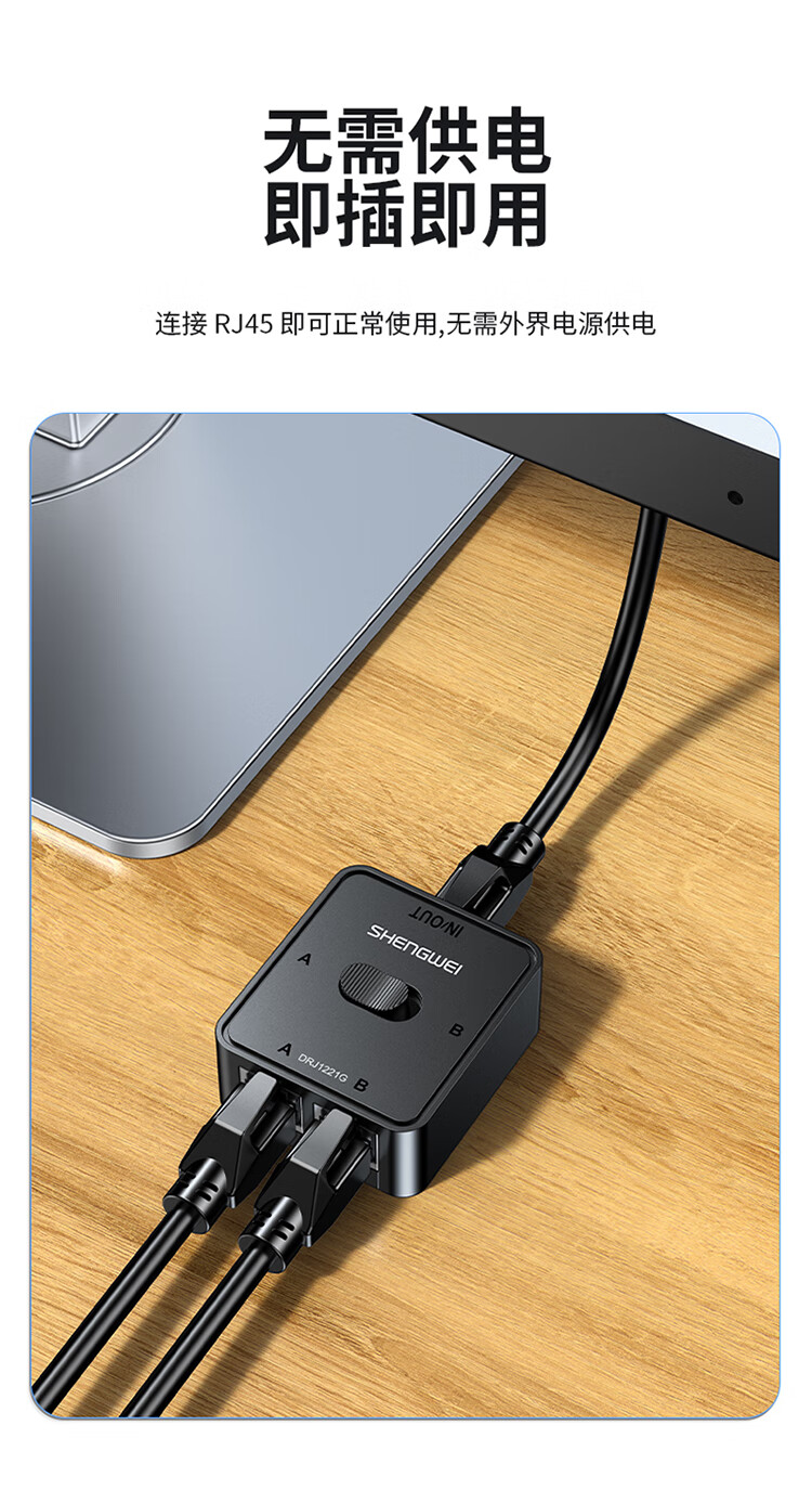 Shengwei network switch network cable Gigabit splitter 2 in 1 out/1 in 2 out plug-free switching between internal and external networks computer sharing device DRJ1221G