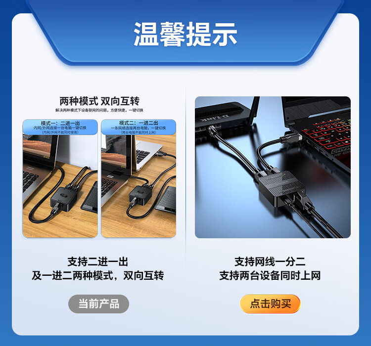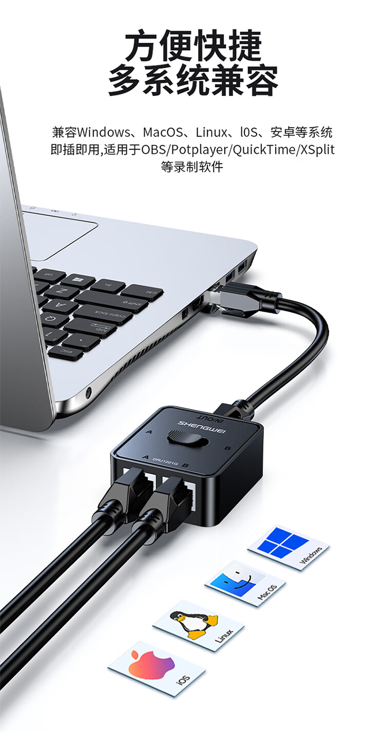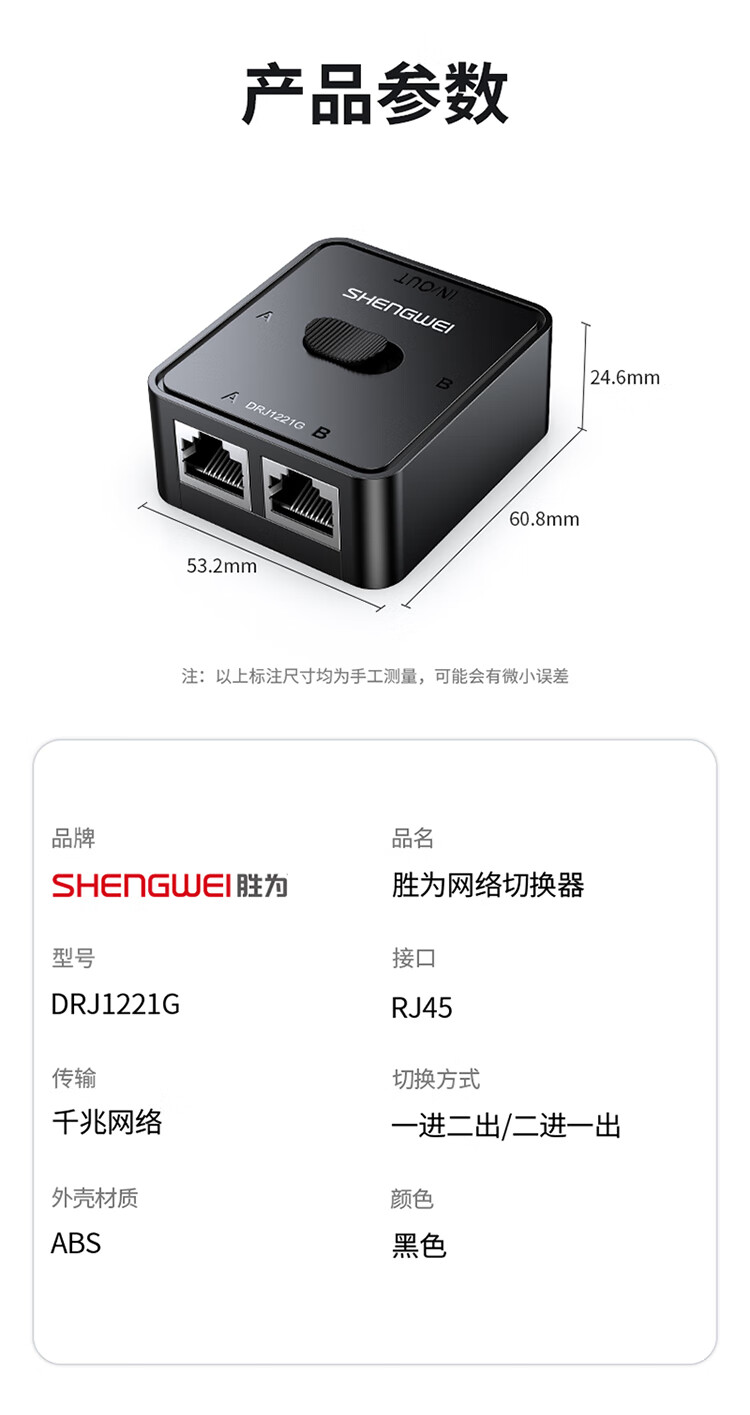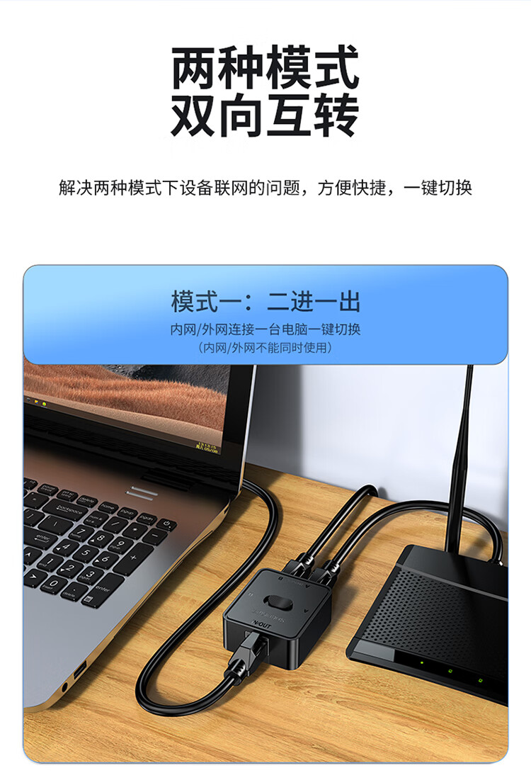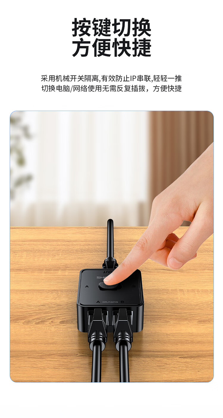 Shengwei network switch network cable Gigabit splitter 2 in 1 out/1 in 2 out plug-free switching between internal and external networks computer sharing device DRJ1221G