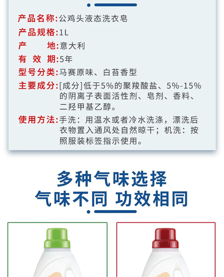 Big Rooster Butler Big Rooster Liquid Laundry Soap Gentle and non-harming natural Marseille soap formula classic fragrance 1000ml