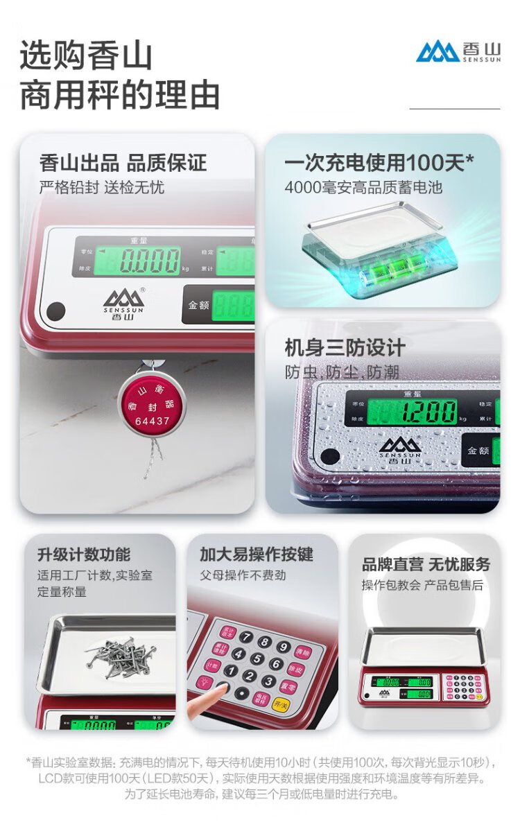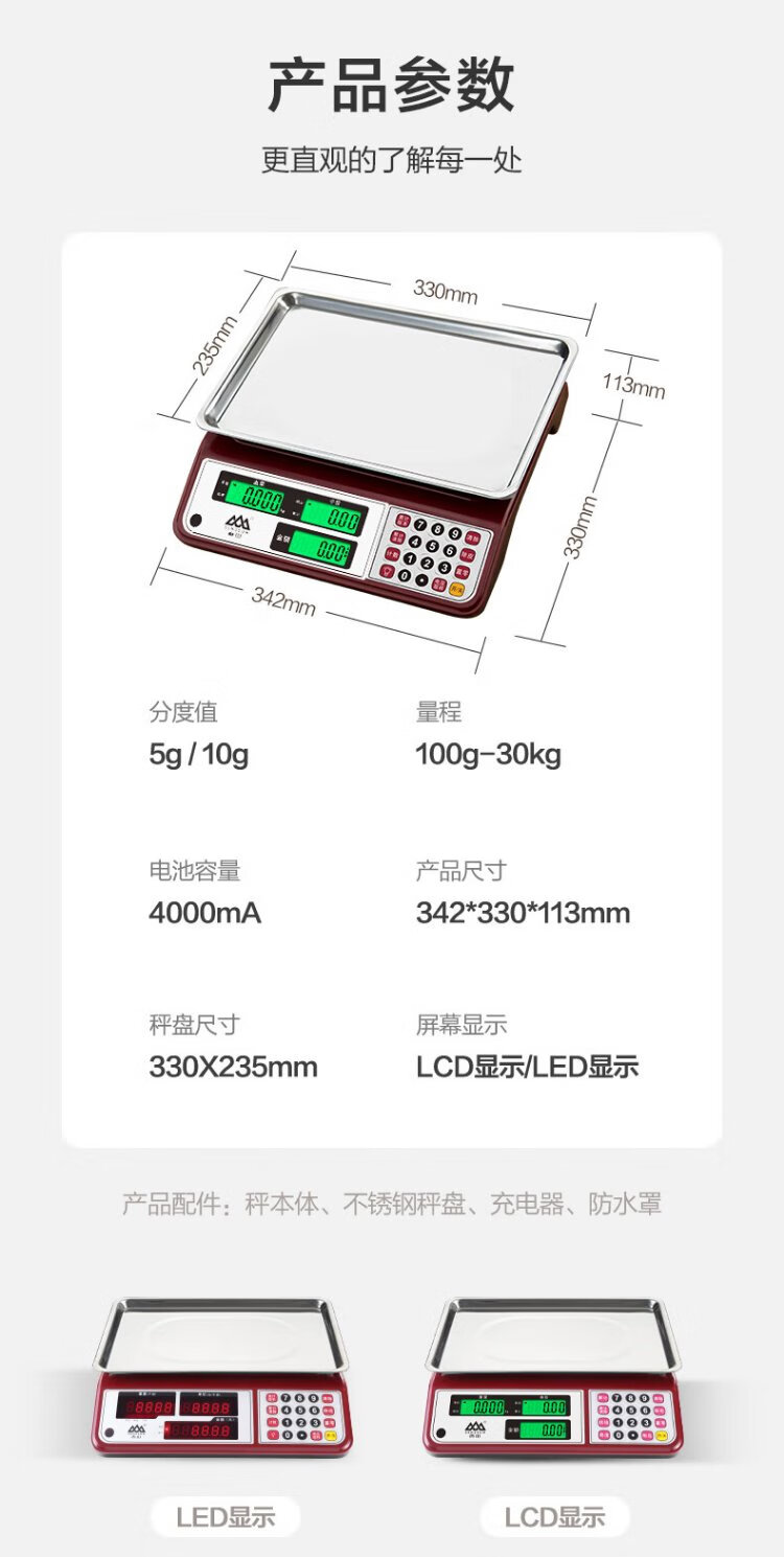 Xiangshan electronic scale commercial electronic platform scale high-precision vegetable weighing scale counting scale pricing scale supermarket market platform scale 30kg long battery life LCD concave plate