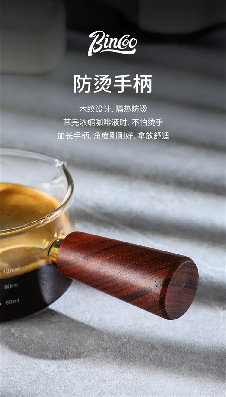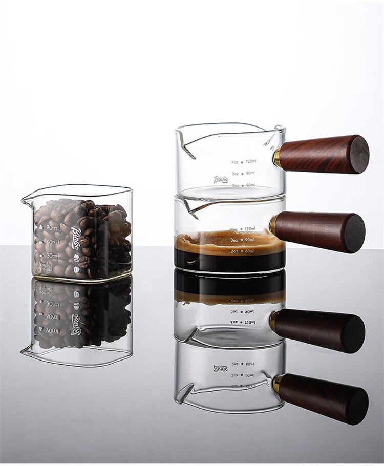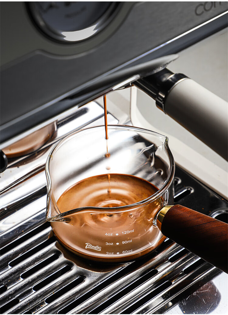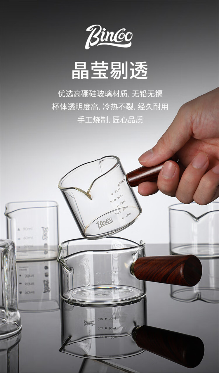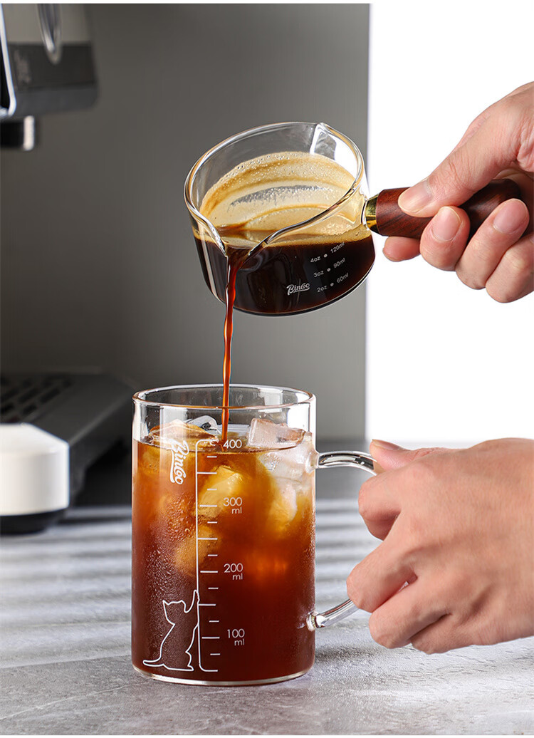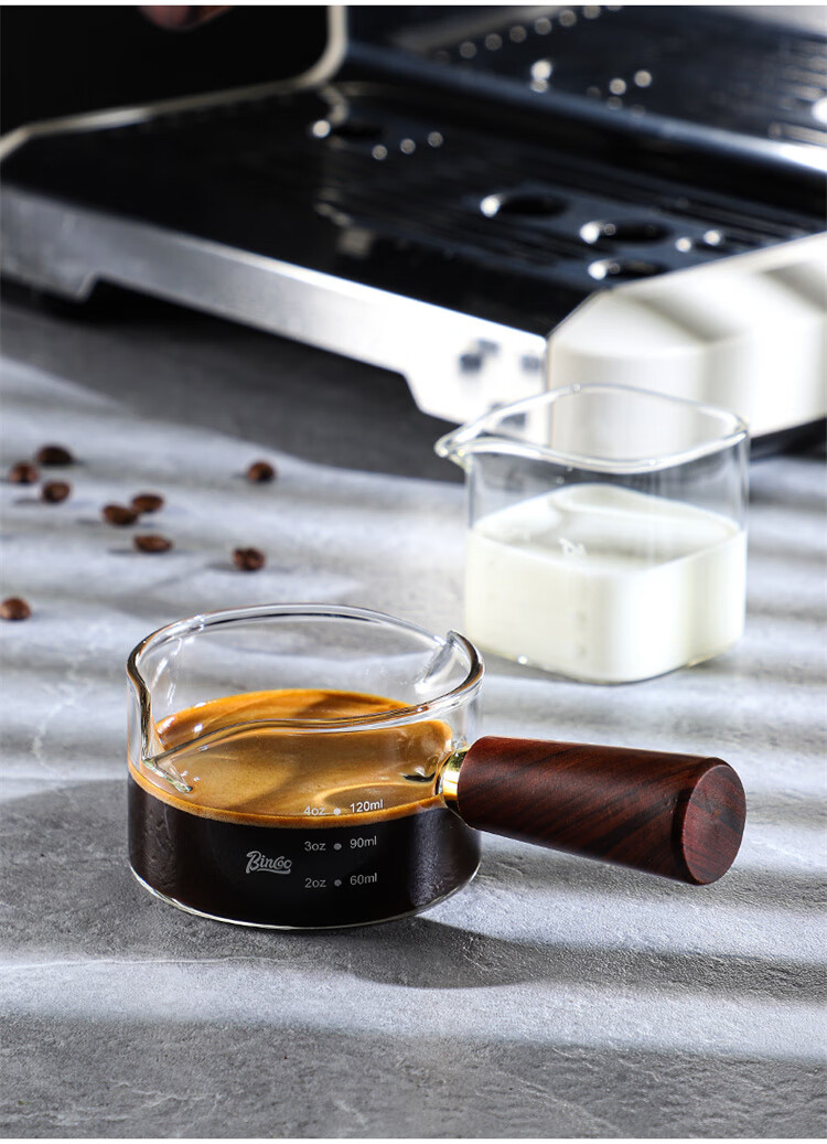 Bincoo espresso coffee extraction cup with scale glass measuring cup espresso cup wooden handle small milk cup milk jug ounce cup
