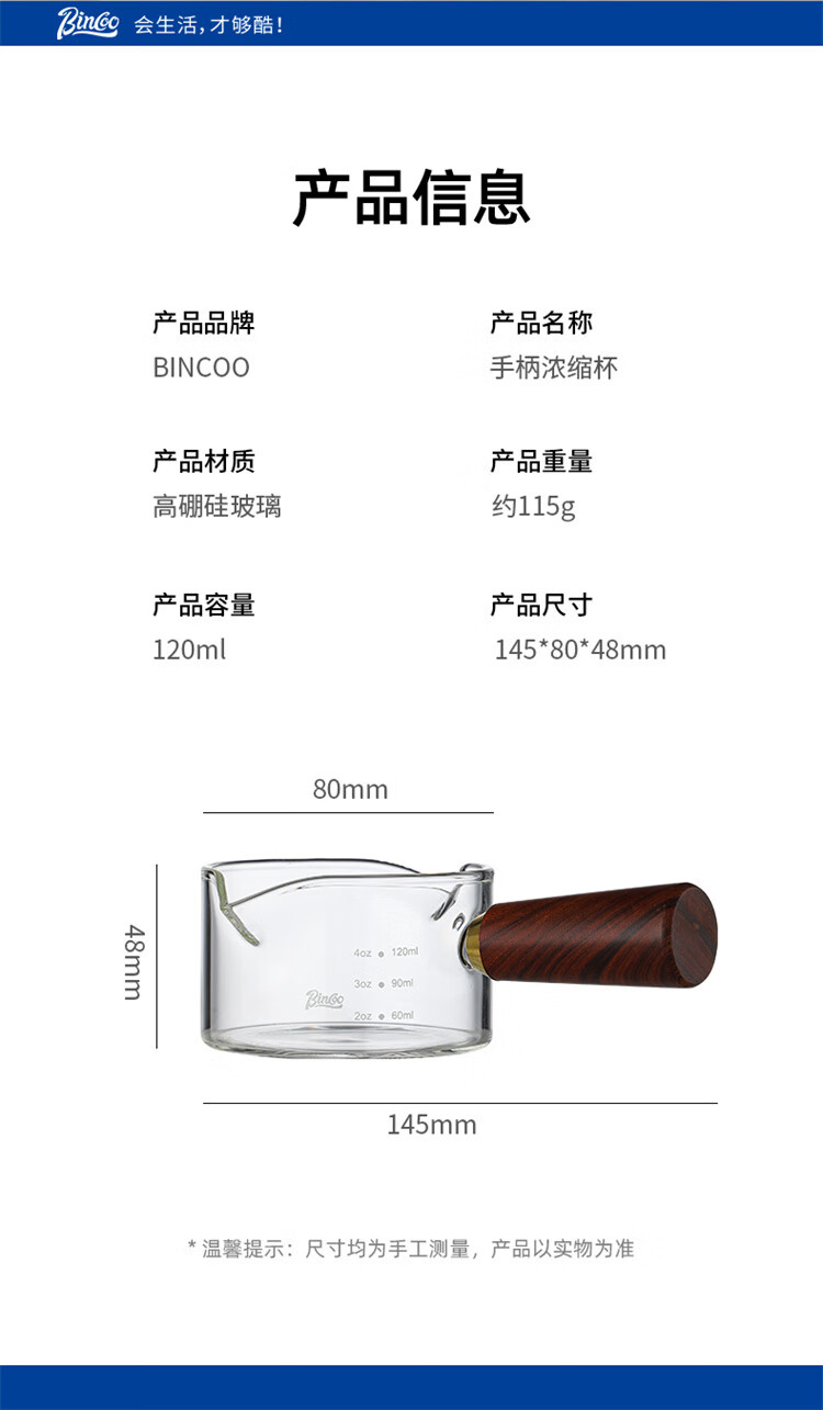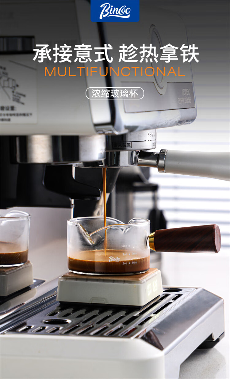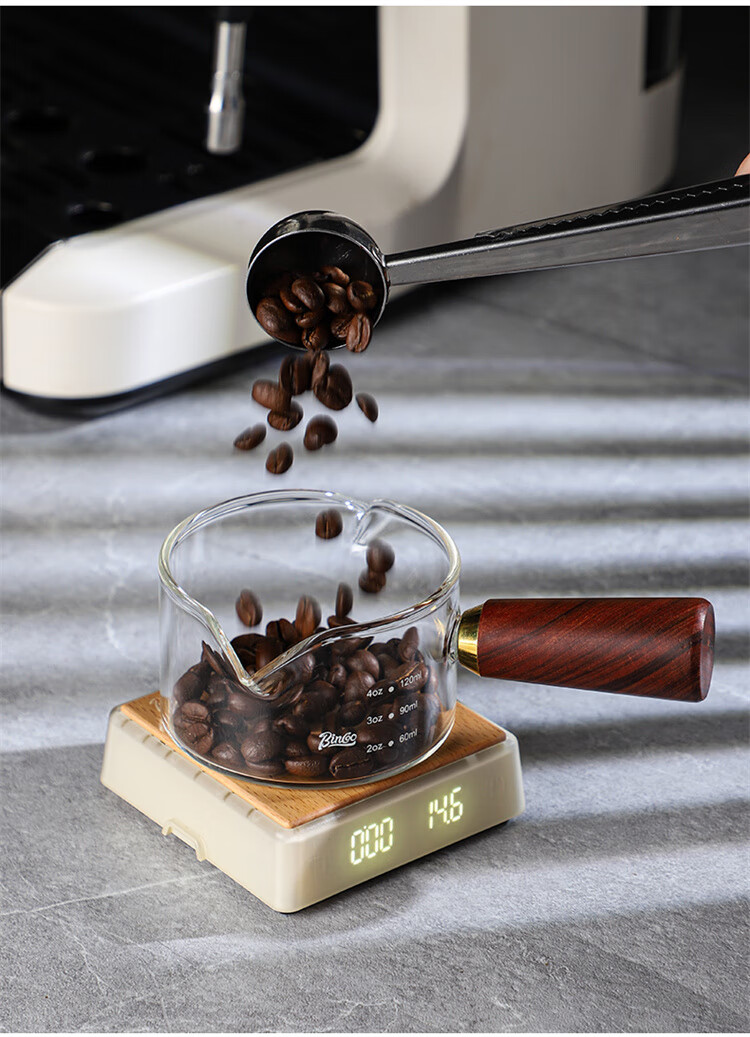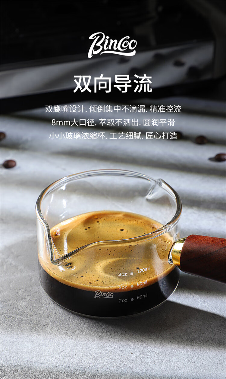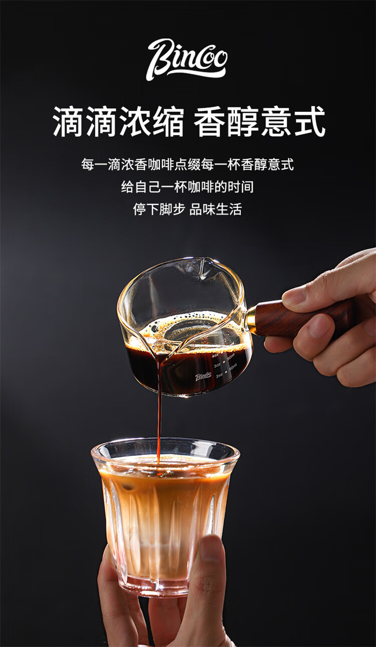 Bincoo espresso coffee extraction cup with scale glass measuring cup espresso cup wooden handle small milk cup milk jug ounce cup
