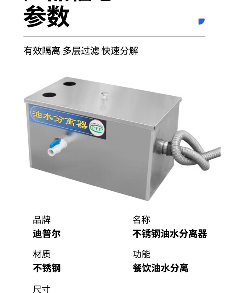 Dipur oil-water separator filter hotel stainless steel grease trap sewage treatment commercial oil filter