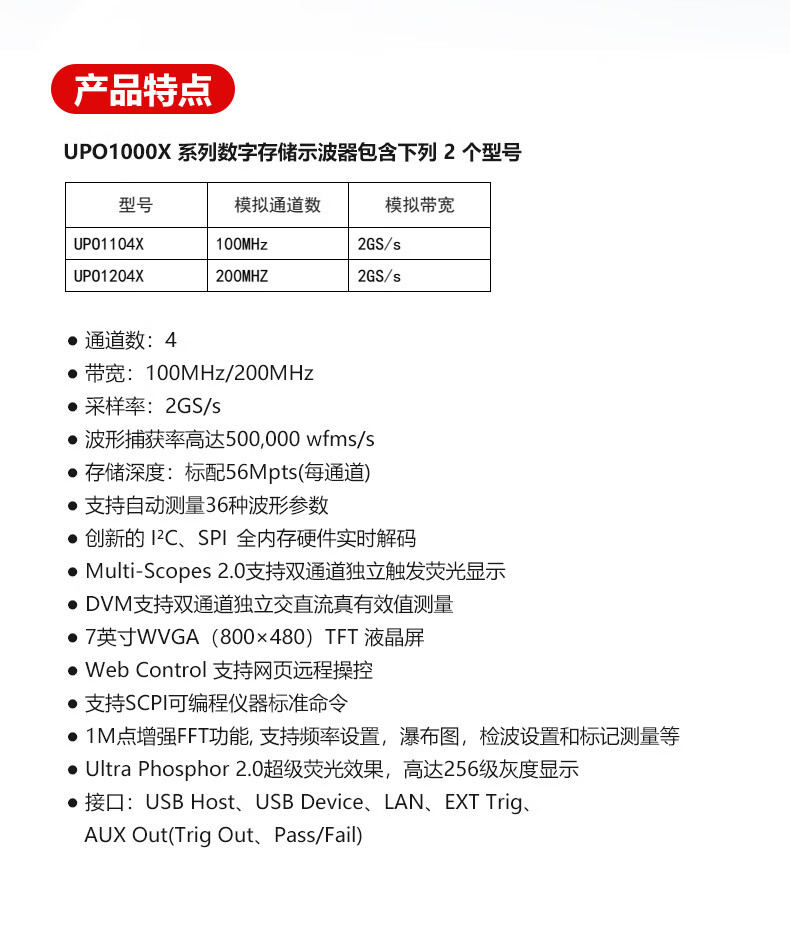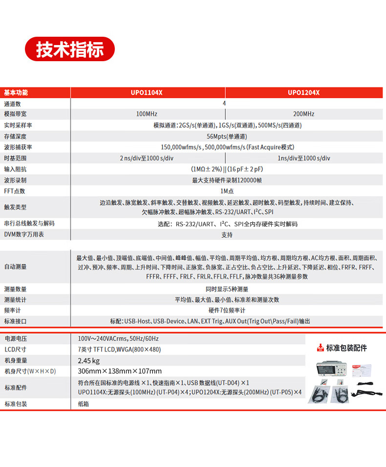 Unilide UPO1204X high-precision digital fluorescence oscilloscope 200M four-channel oscilloscope digital storage oscilloscope