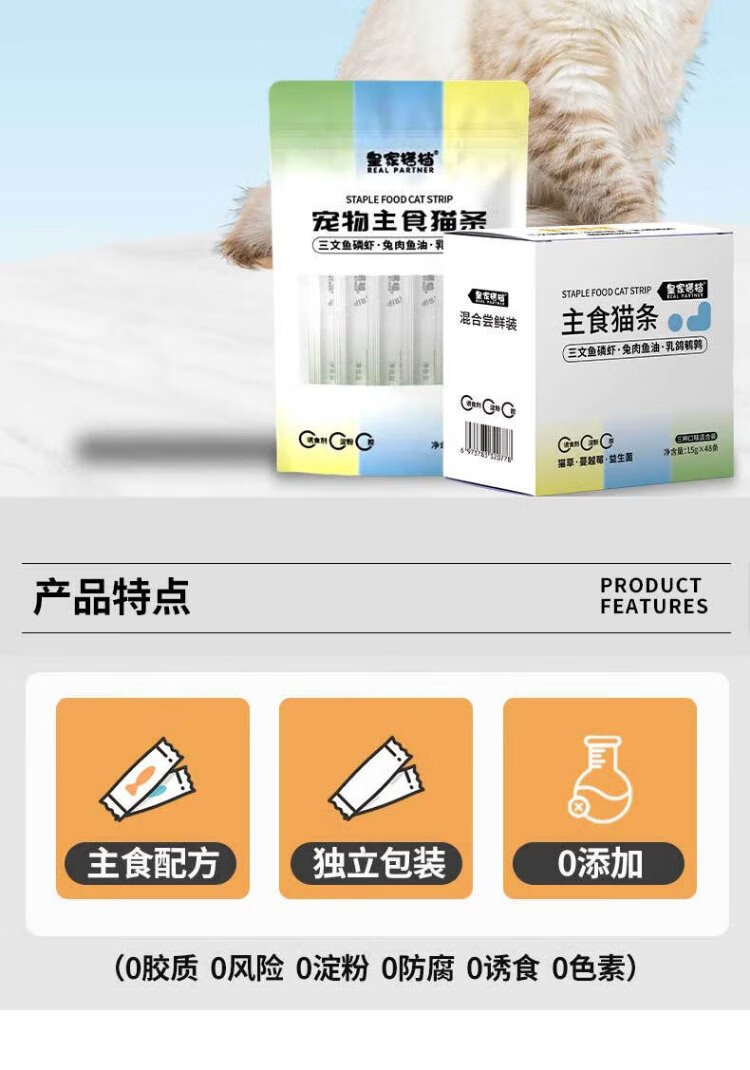 Royal partner cat strips cat snacks full price staple cat strips salmon krill + cat grass formula 15g*48 pieces