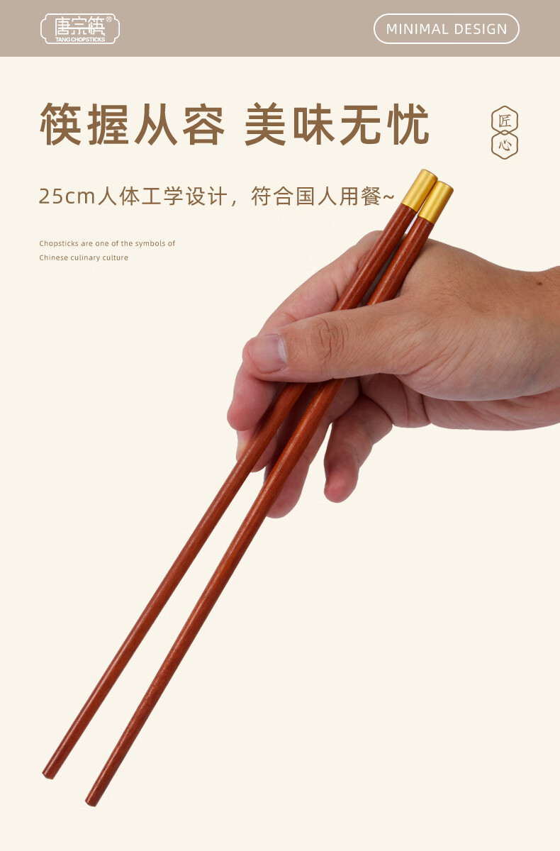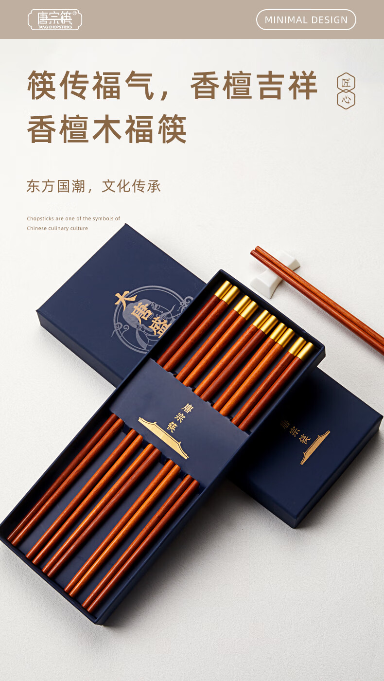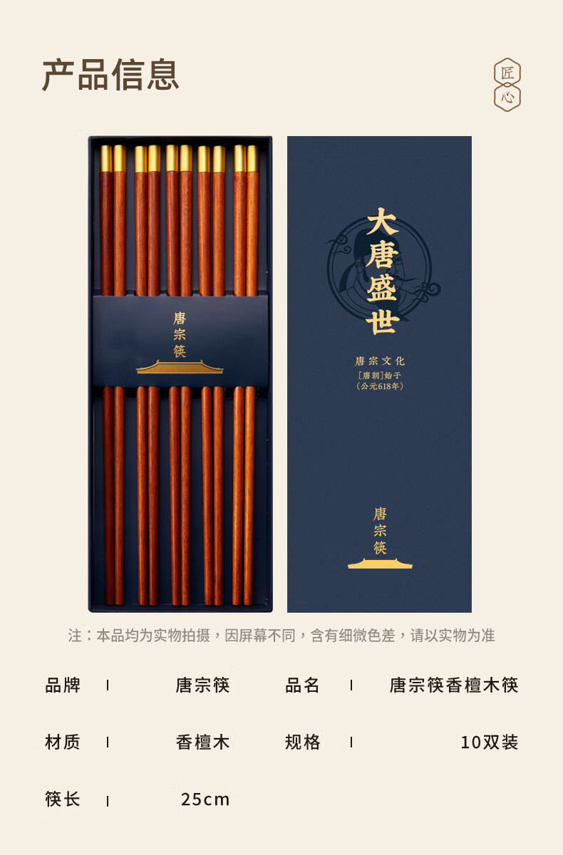Tang Zong chopsticks fragrant sandalwood chopsticks 10 pairs, one pair for each person, natural household chopsticks, solid wood log C3166