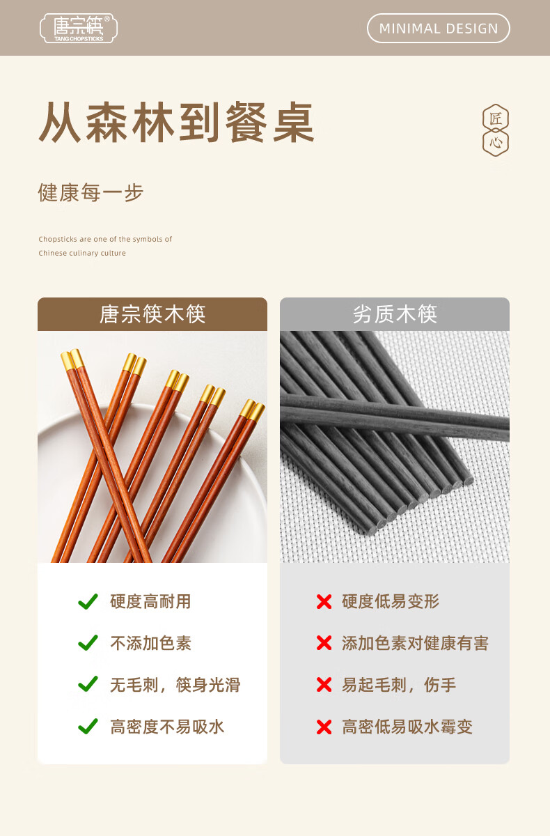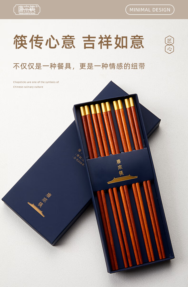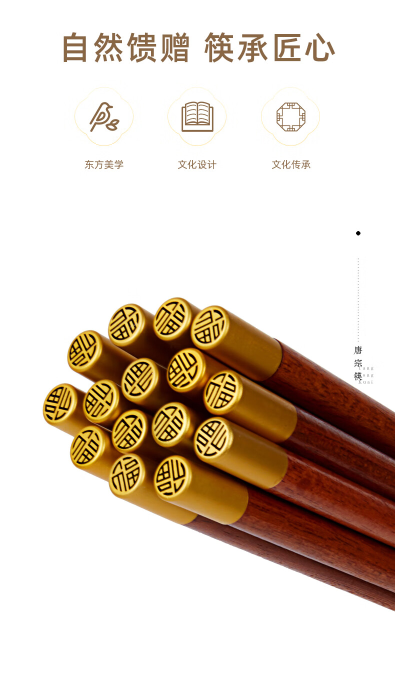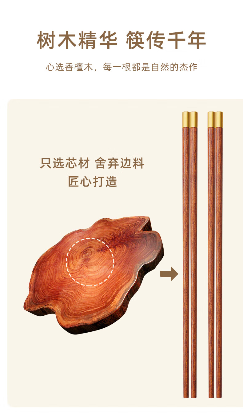 Tang Zong chopsticks fragrant sandalwood chopsticks 10 pairs, one pair for each person, natural household chopsticks, solid wood log C3166
