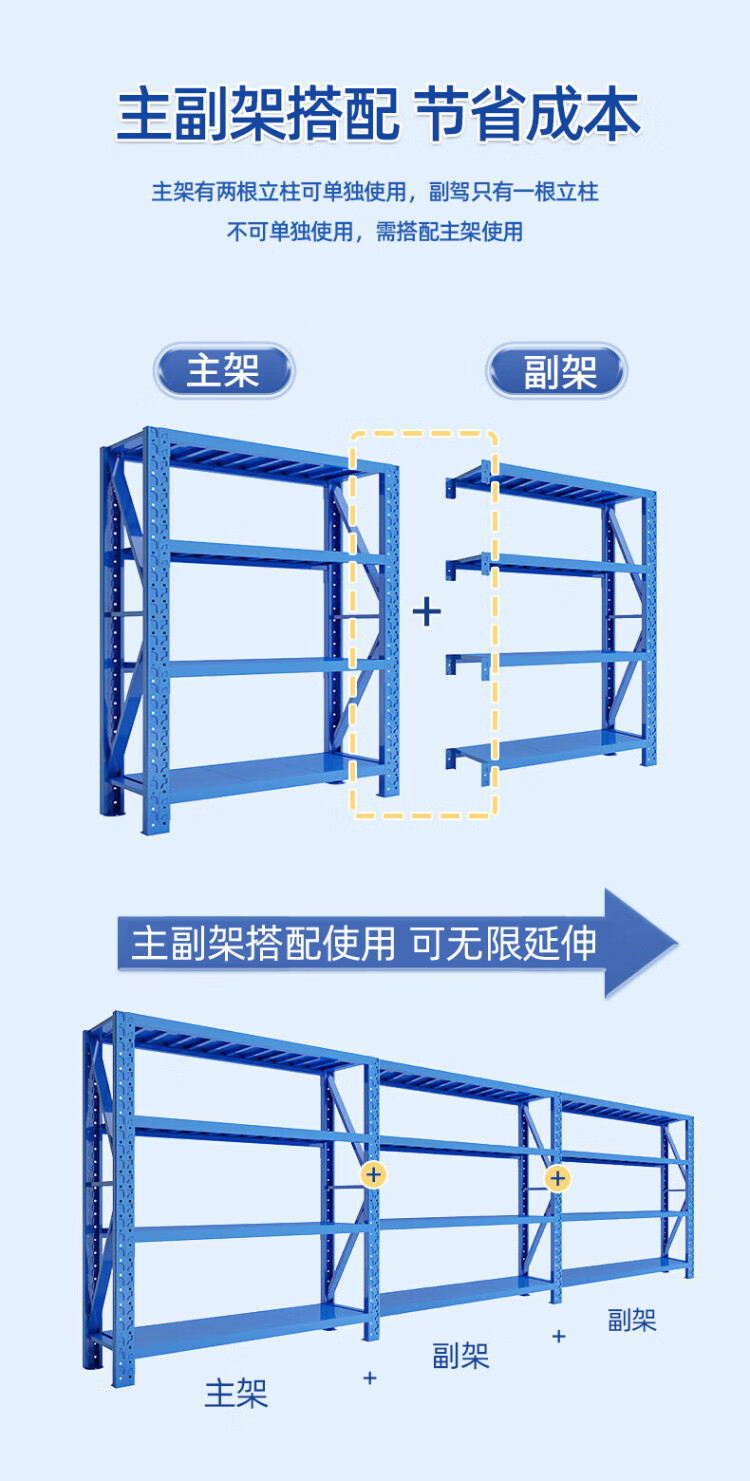 Xingyun shelf storage warehouse cargo rack medium-sized 2000*600*2000 storage rack warehouse storage rack equipment display rack iron frame white main rack four layers
