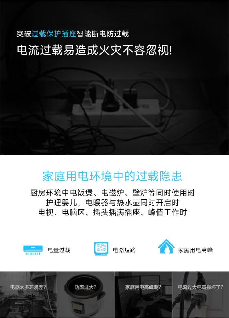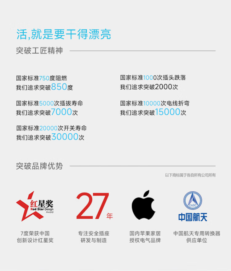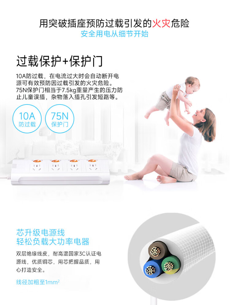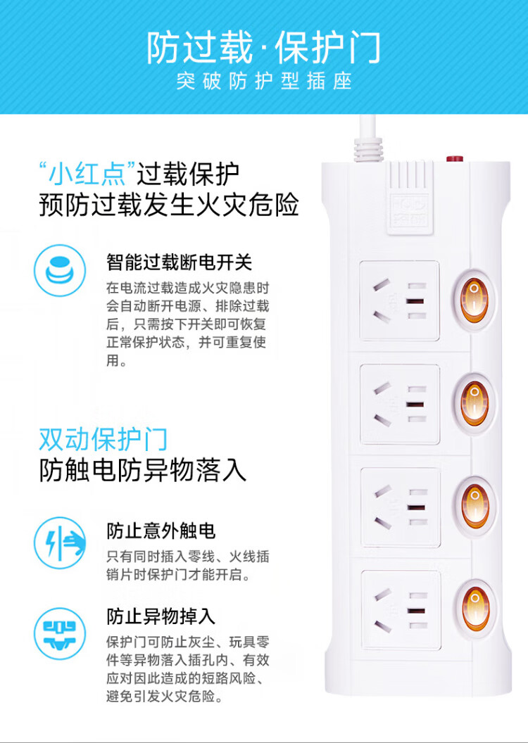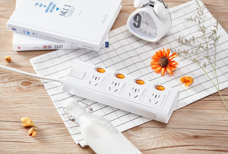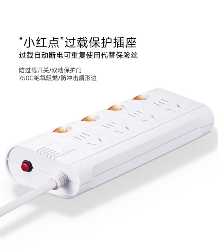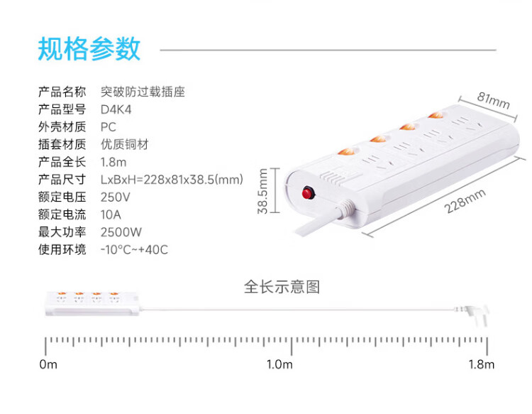 Breakthrough socket 4-position sub-control switch new national standard five-hole 1.8m 10A with indicator light recoverable overload protection white D4K4 (1m8) strip