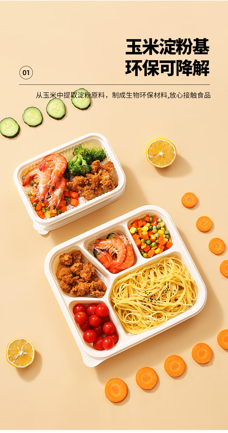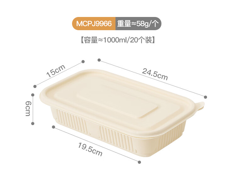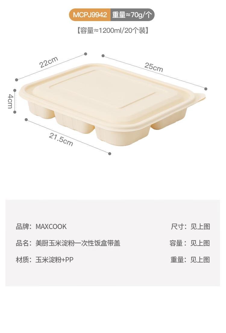 MAXCOOK Disposable Lunch Box Biodegradable Corn Starch Recipe 750ml*20 Sets Fast Food Packing Box Microwaveable MCPJ9959