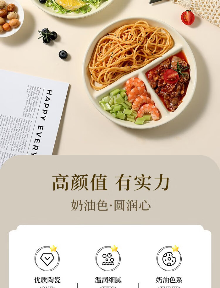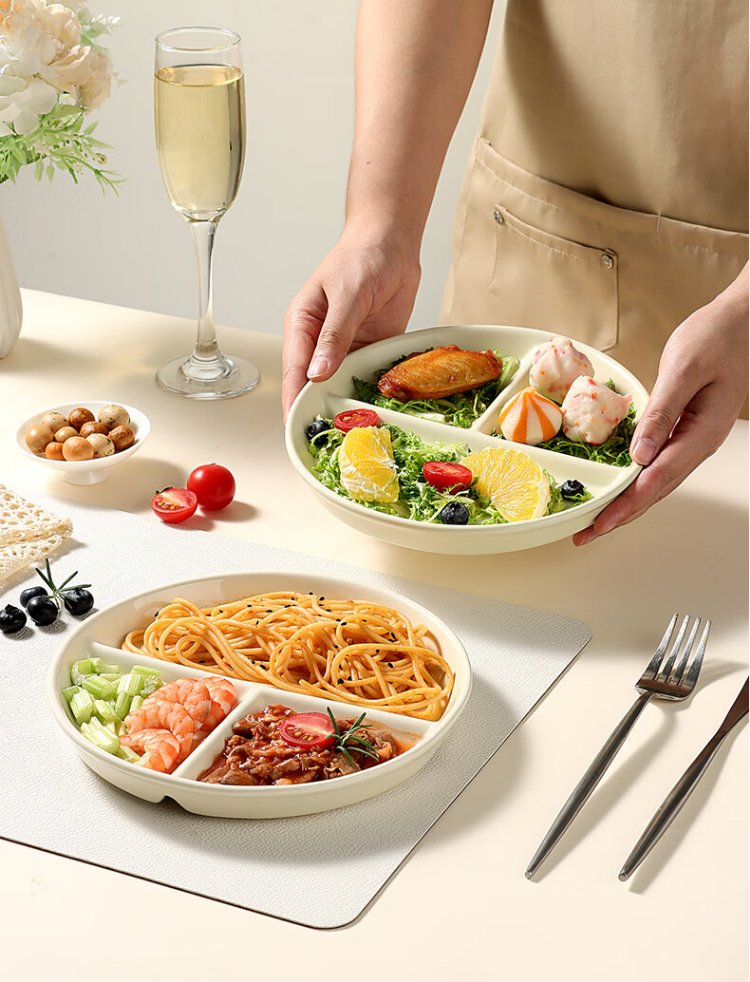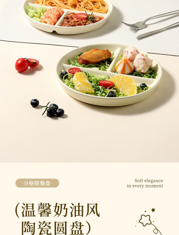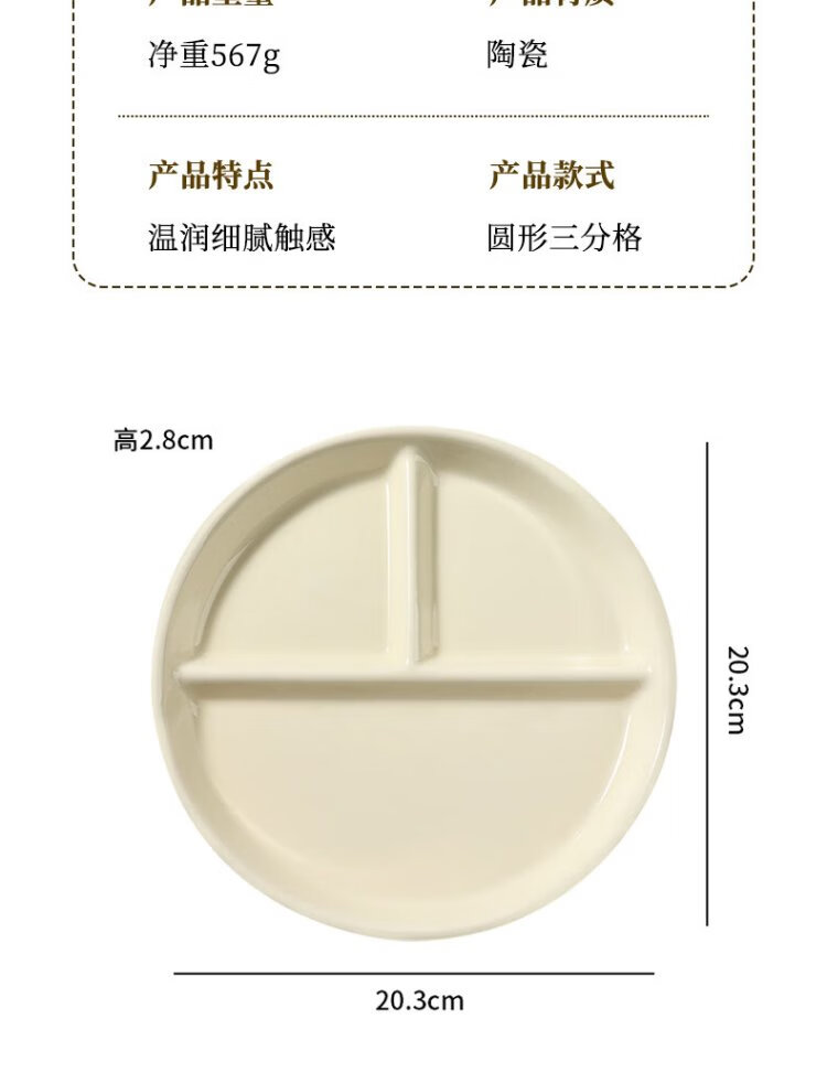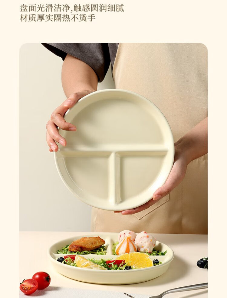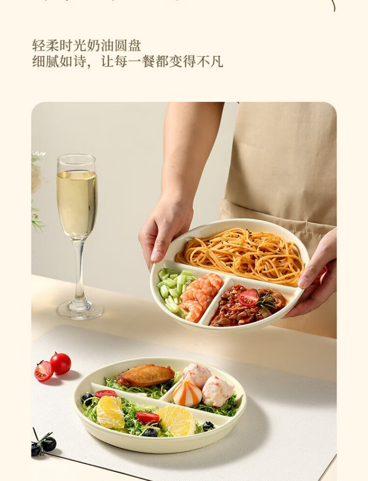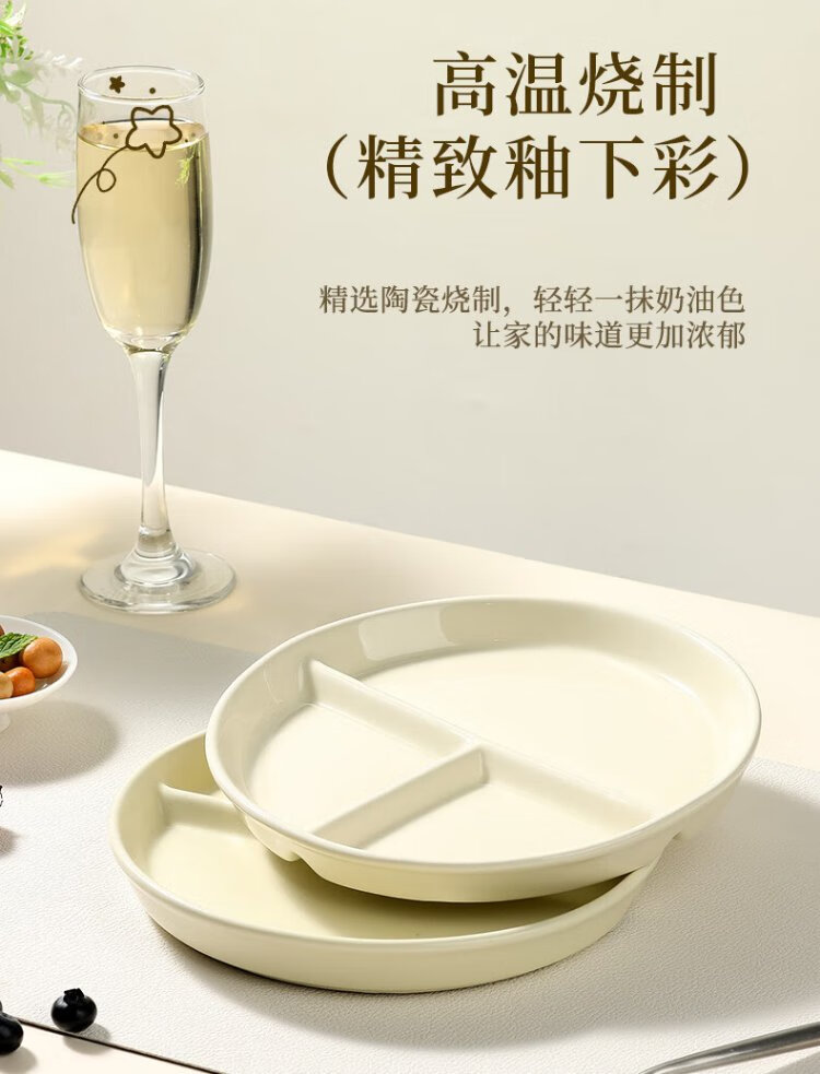 Baijie ceramic fat-reduced quantitative meal plate 211 divided plate student breakfast plate dumpling plate fruit plate cream yellow glossy surface