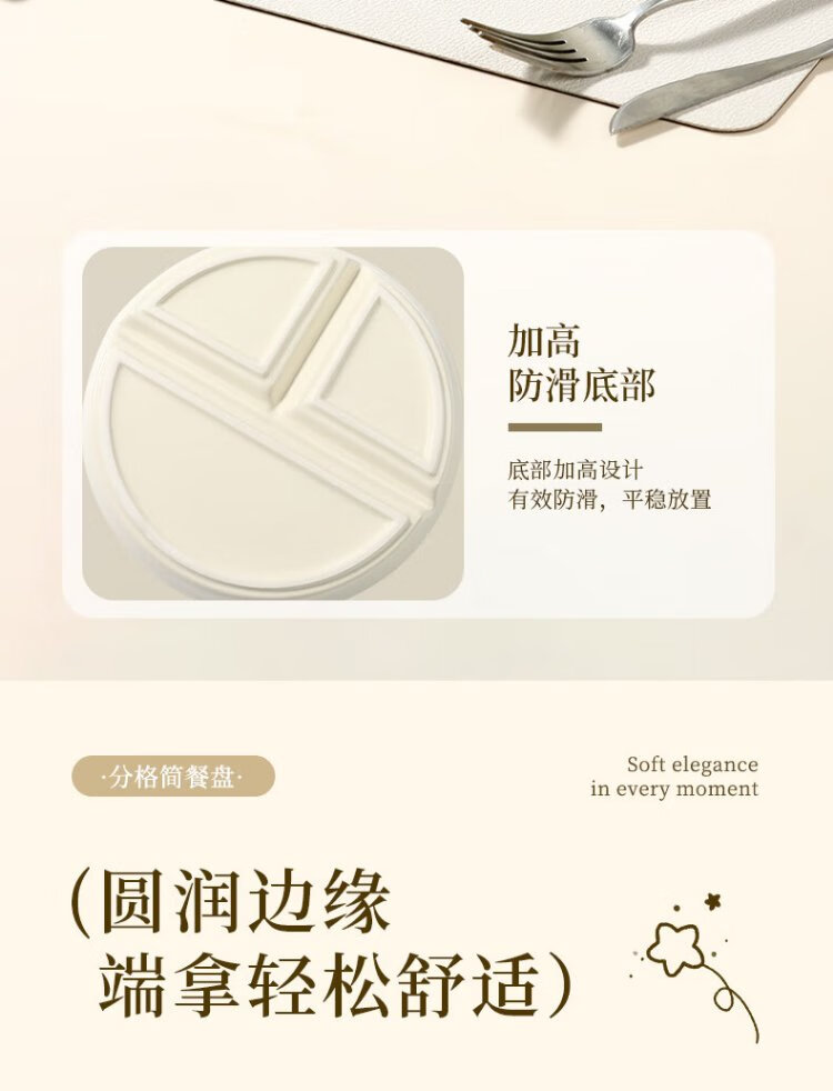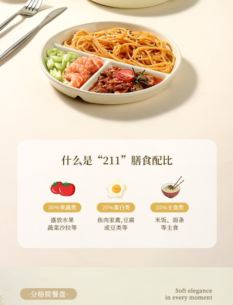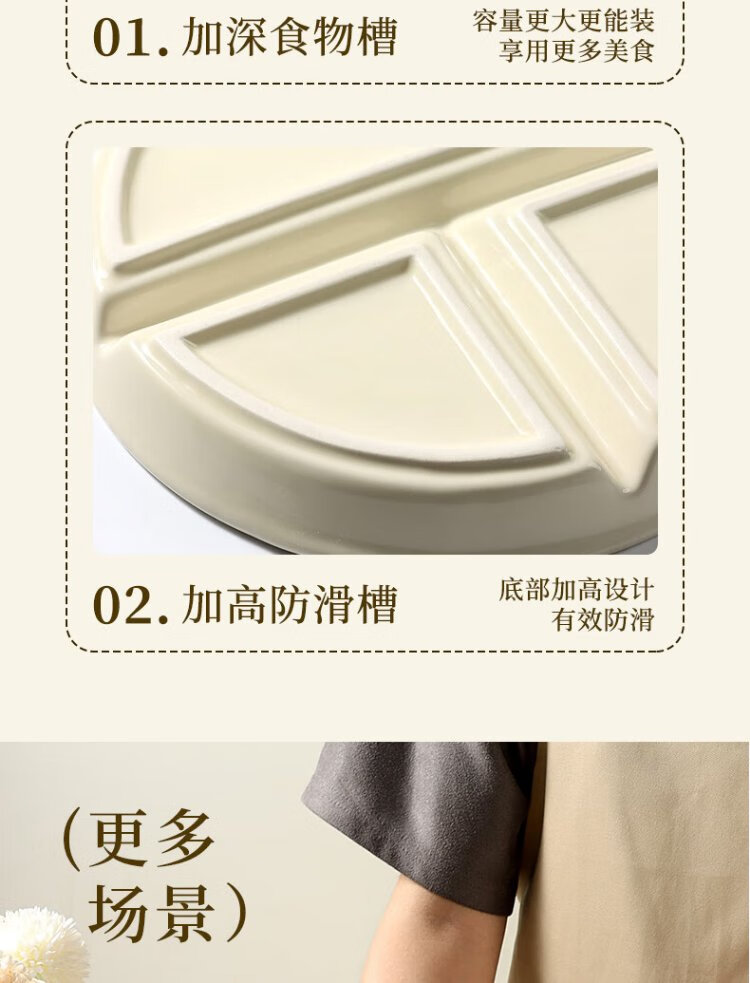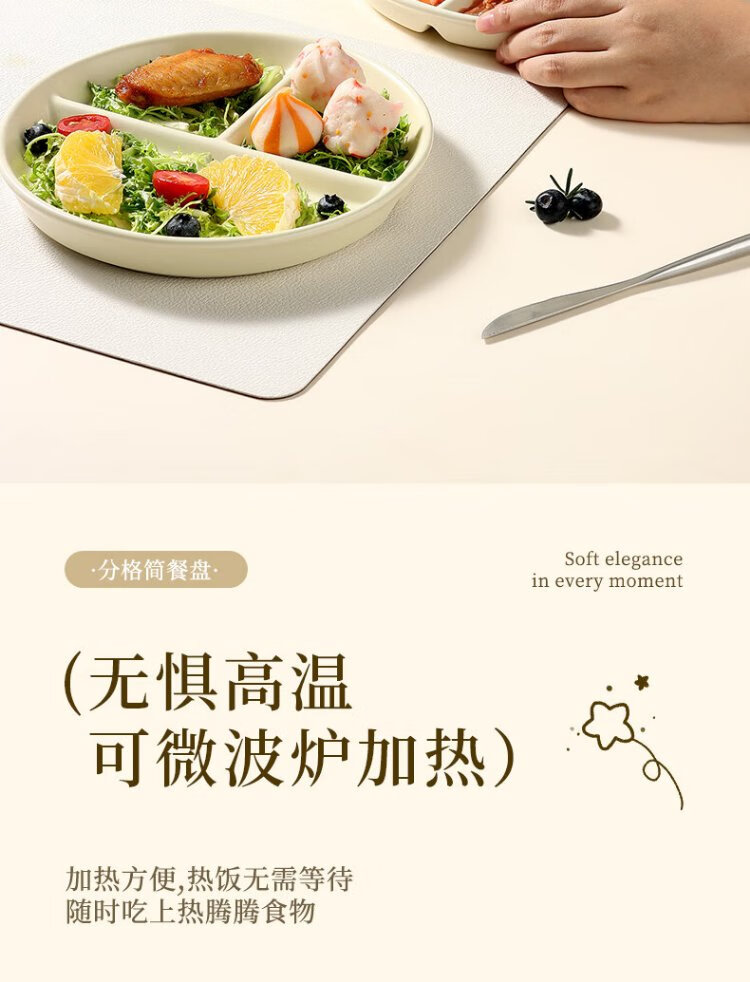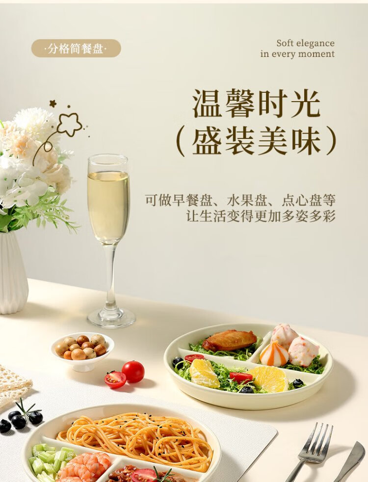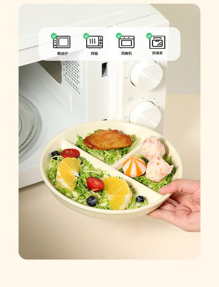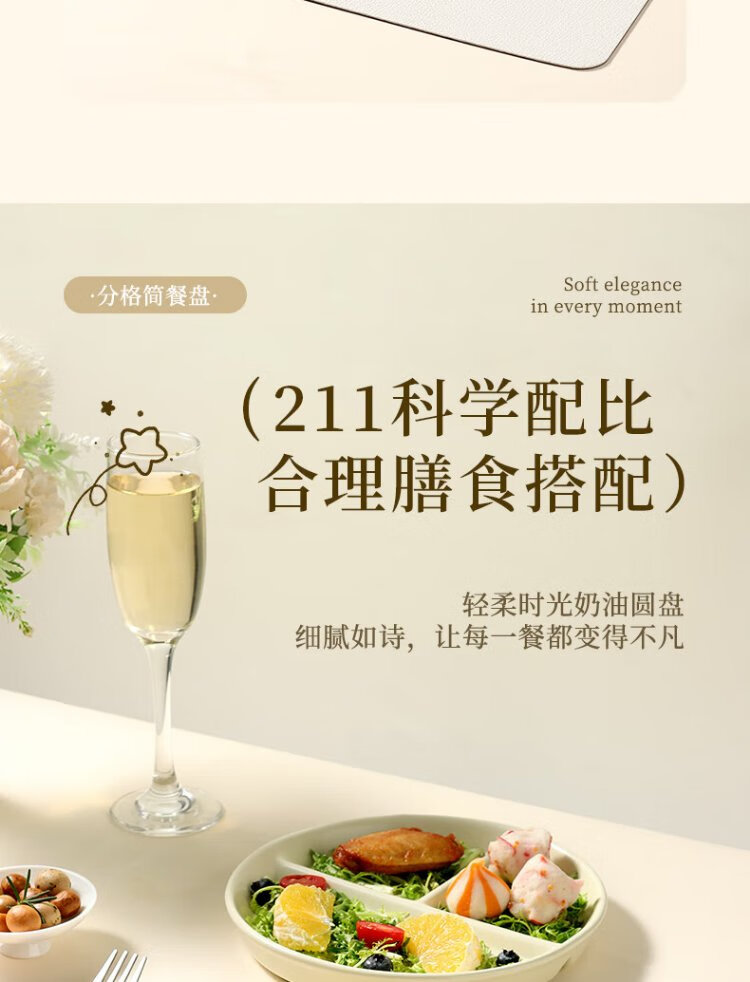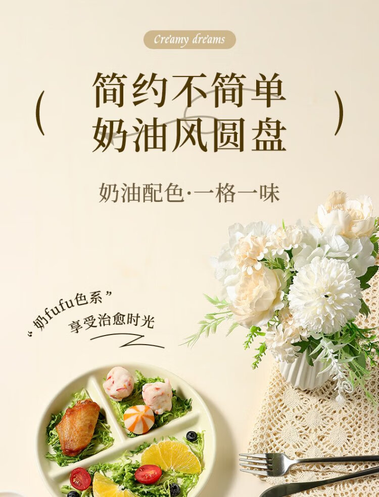 Baijie ceramic fat-reduced quantitative meal plate 211 divided plate student breakfast plate dumpling plate fruit plate cream yellow glossy surface