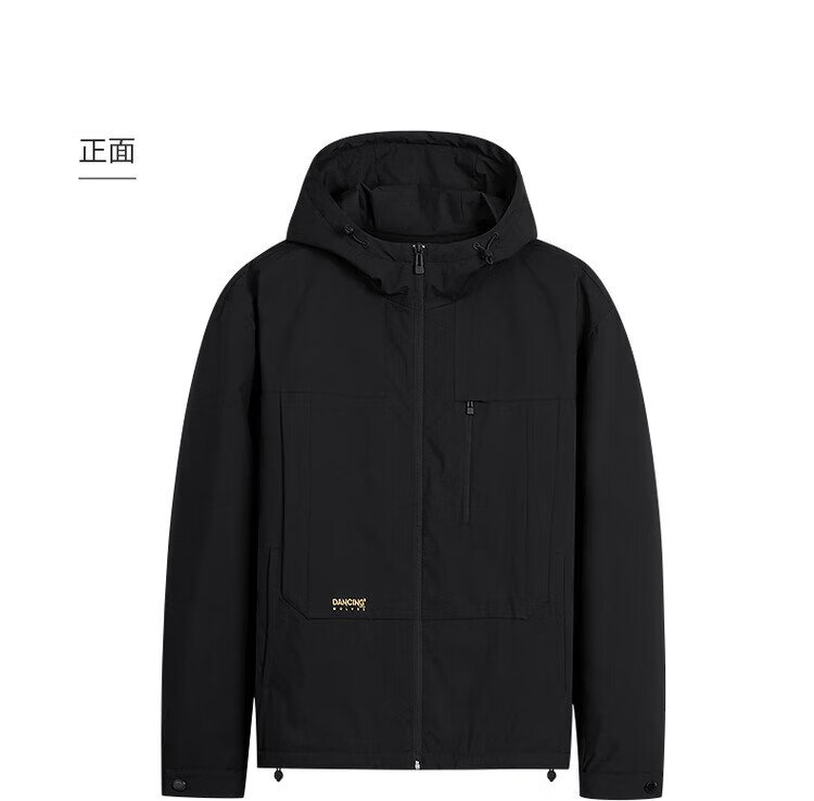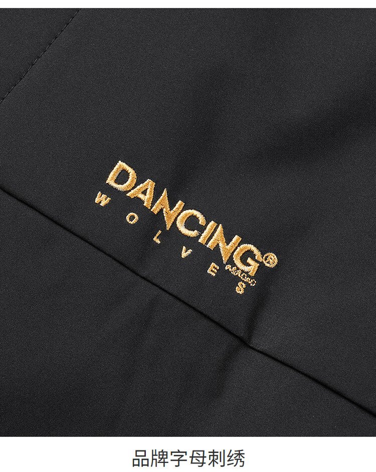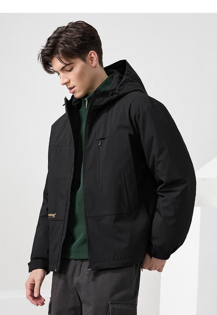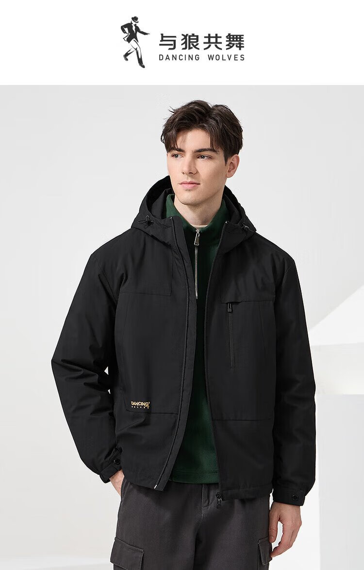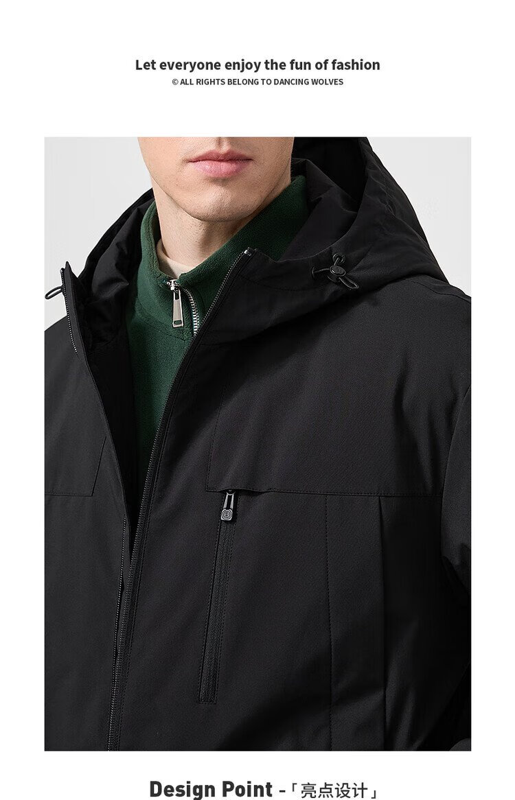 Dances with Wolves Goose down lining & three-proof fabric Light outdoor warm and comfortable versatile hooded jacket 001 black 180