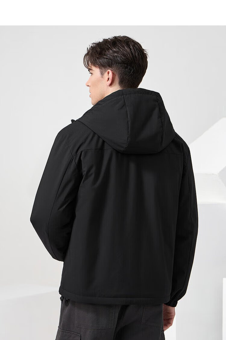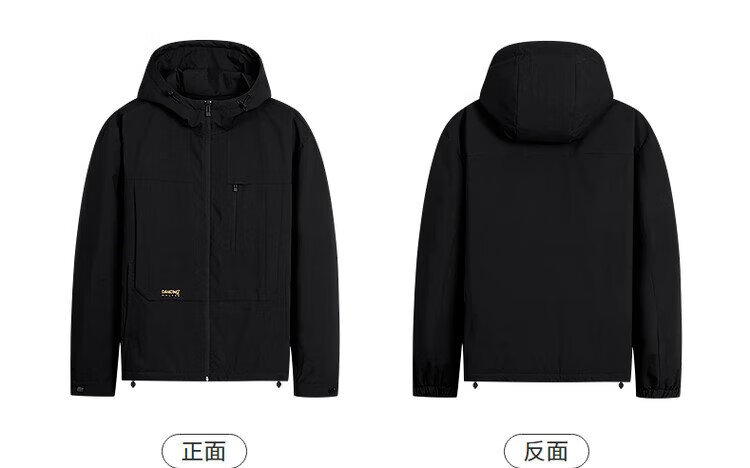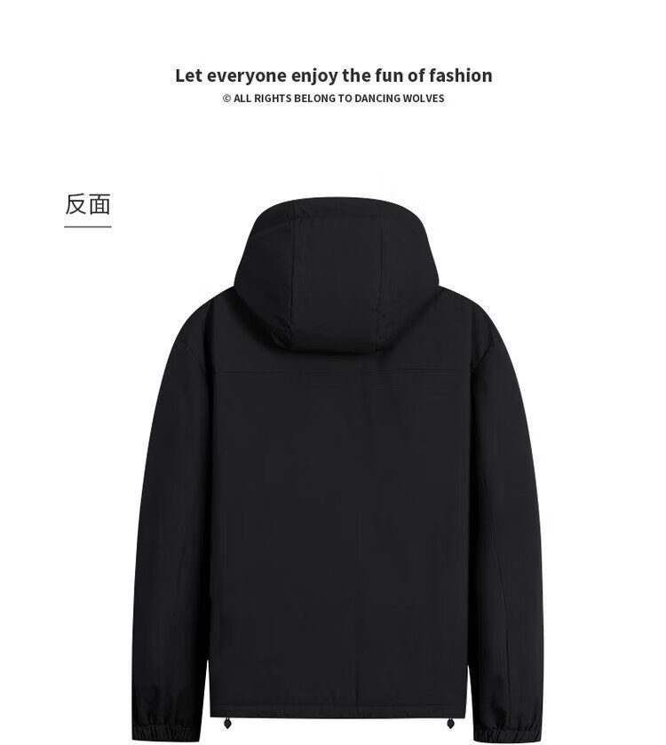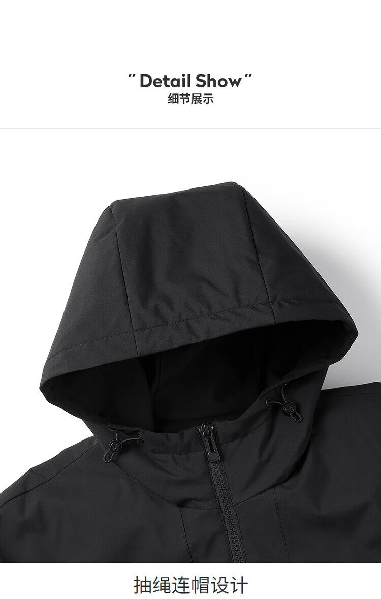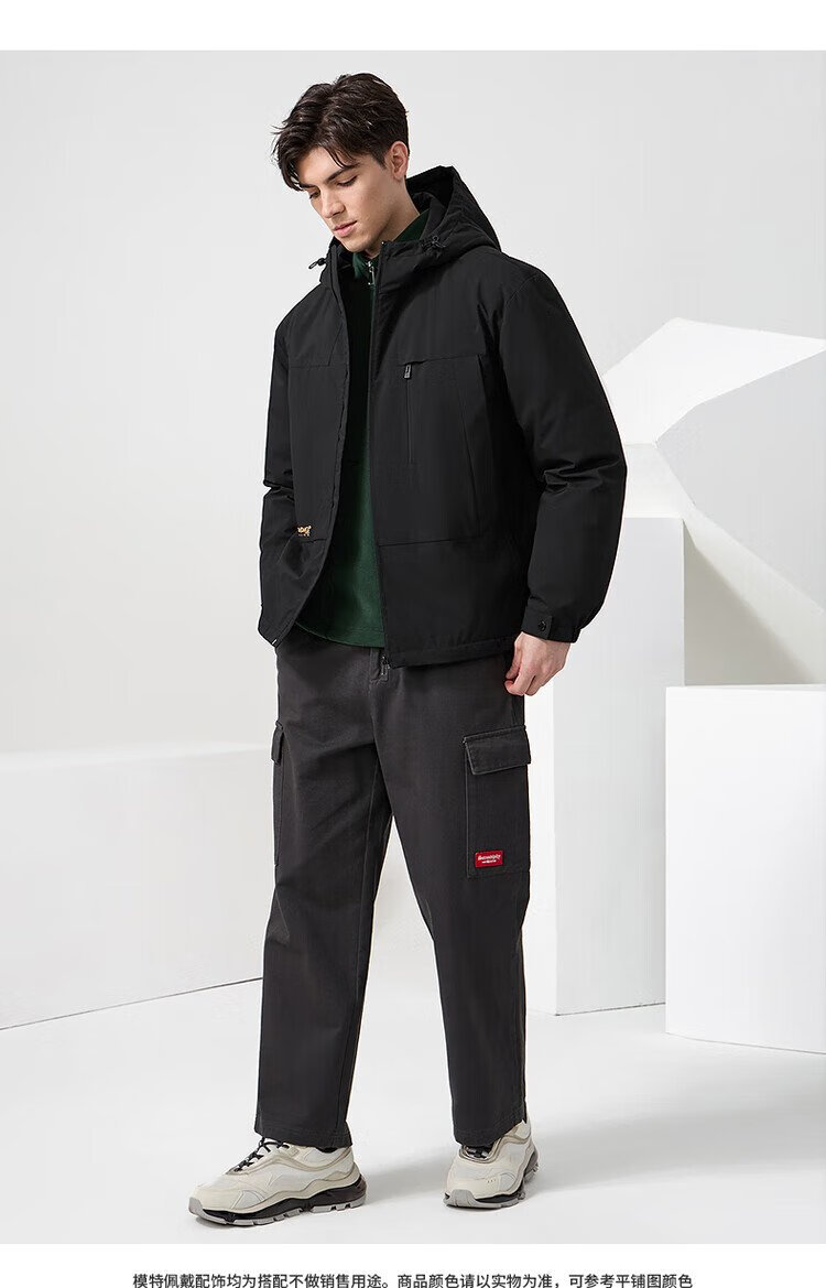 Dances with Wolves Goose down lining & three-proof fabric Light outdoor warm and comfortable versatile hooded jacket 001 black 180