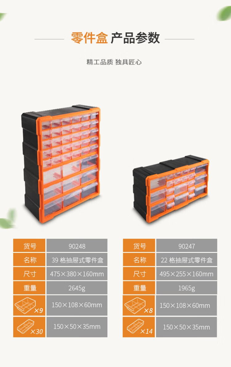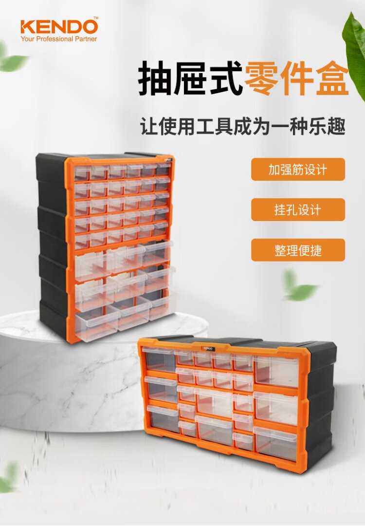 KENDO hardware tool box compartment storage box household screw parts storage box drawer-type storage box