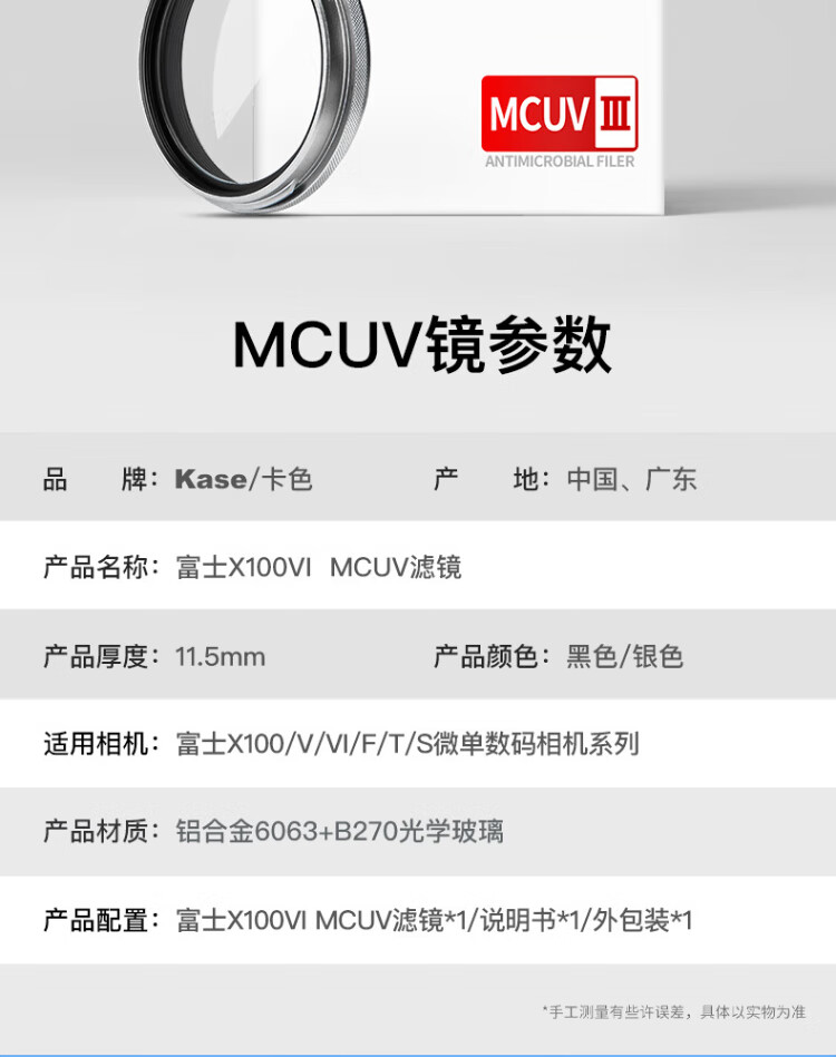 Kase UV filter suitable for Fuji X100V X100F X100Vi digital camera series MC multi-layer coated UV mirror silver