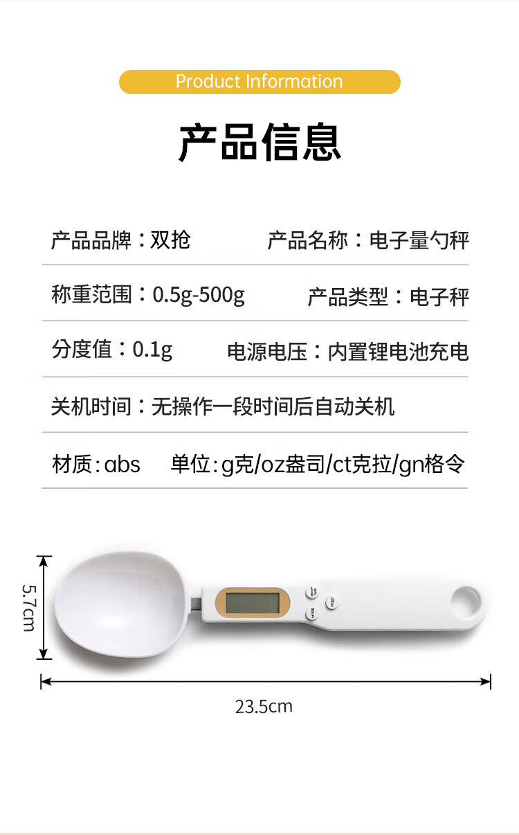 Double Gun (Suncha) Measuring Spoon Electronic Weighing Measuring Spoon Electronic Scale Baby Food Complementary Scale Gram Weight Baked Milk Powder Double Head Measuring Spoon
