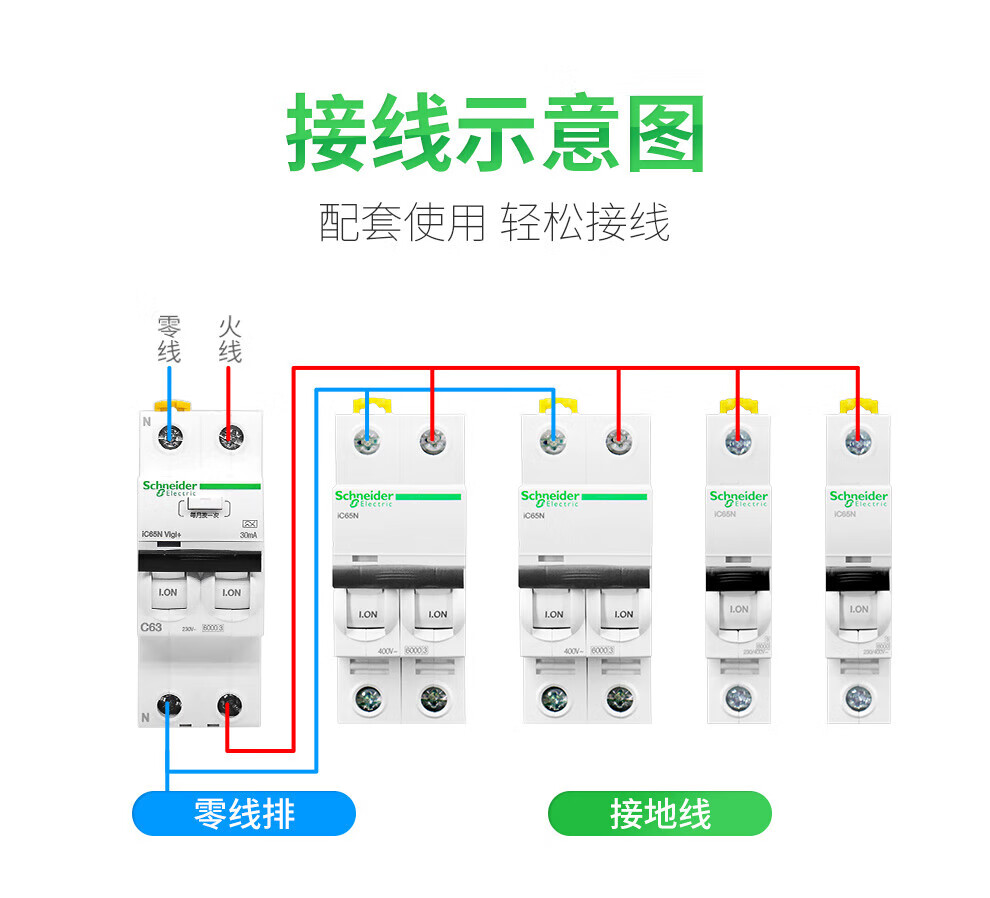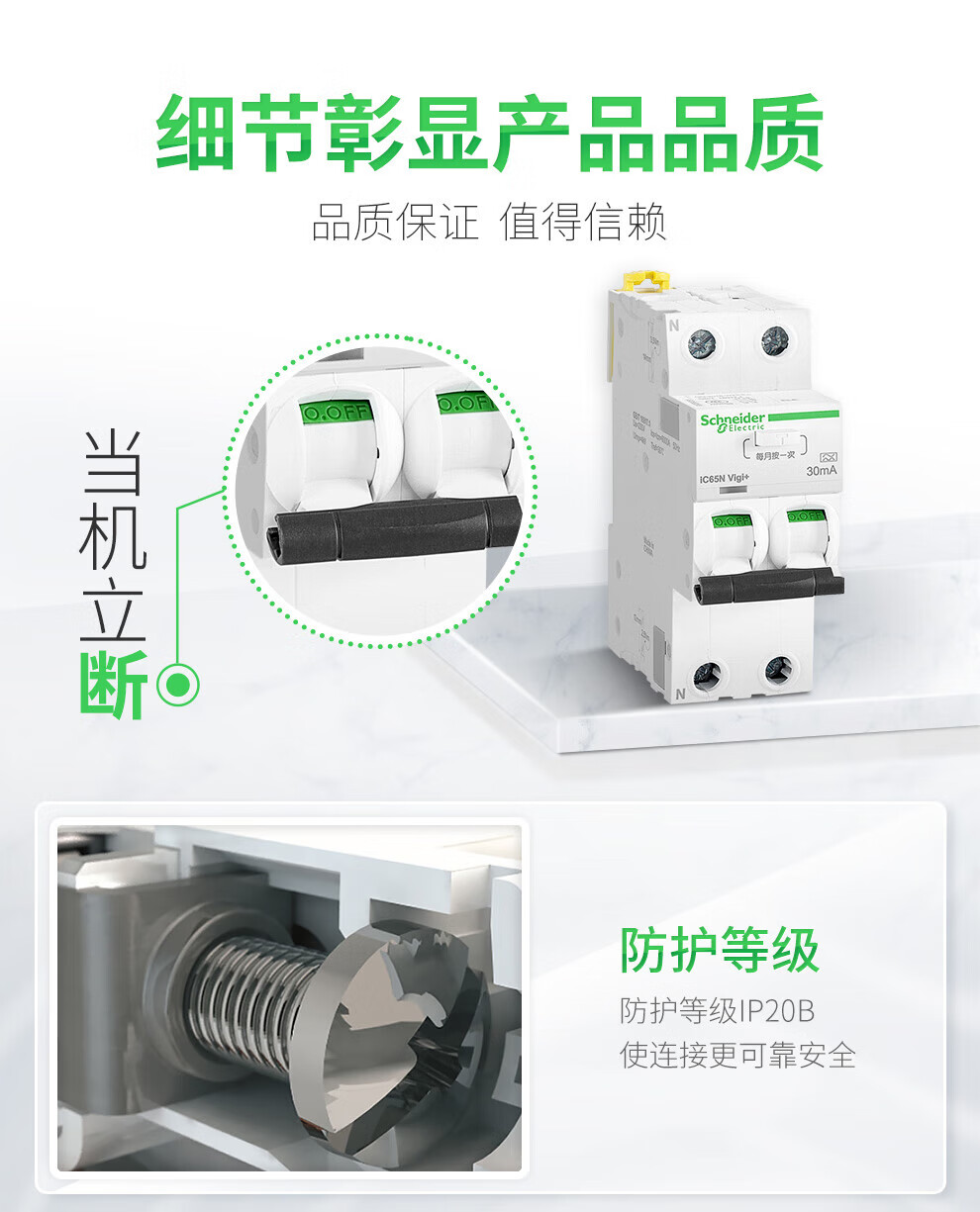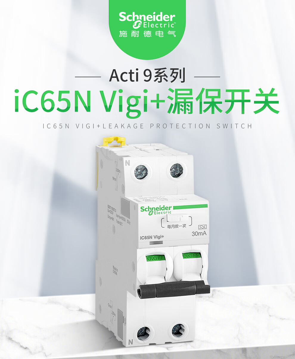 Schneider Electric air switch with leakage protection A9 series IC65N VIGI+2P C 25A 30MA A ELE integrated leakage protection switch A9D65225