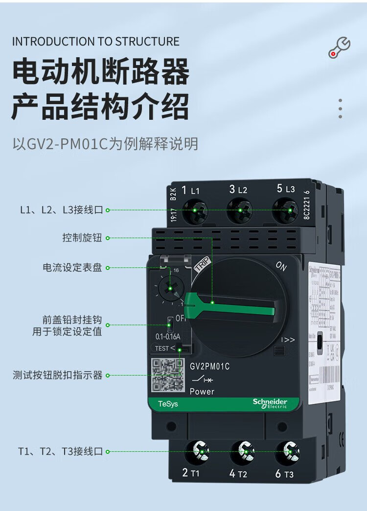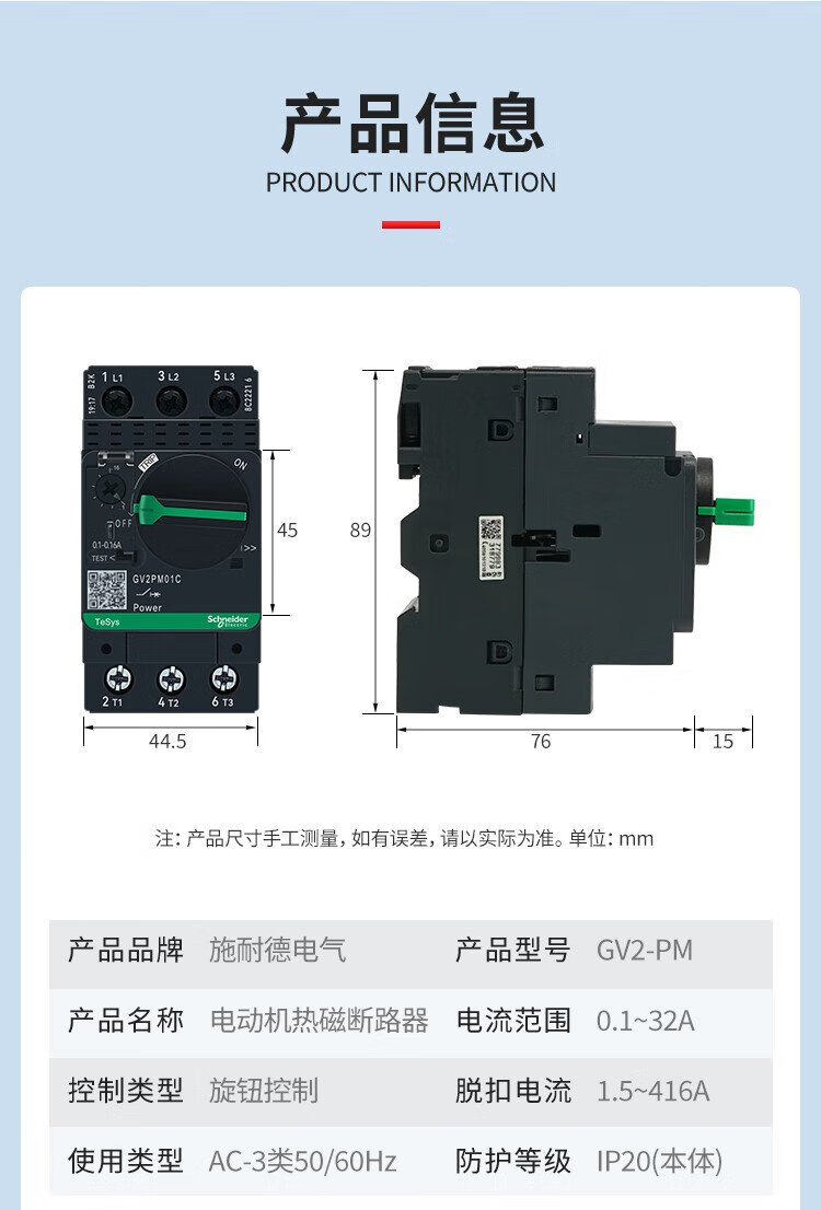 Schneider Electric motor protection circuit breaker thermal magnetic trip knob type control air switch 3P690V GV2PM10C 4~6.3A brand authorization