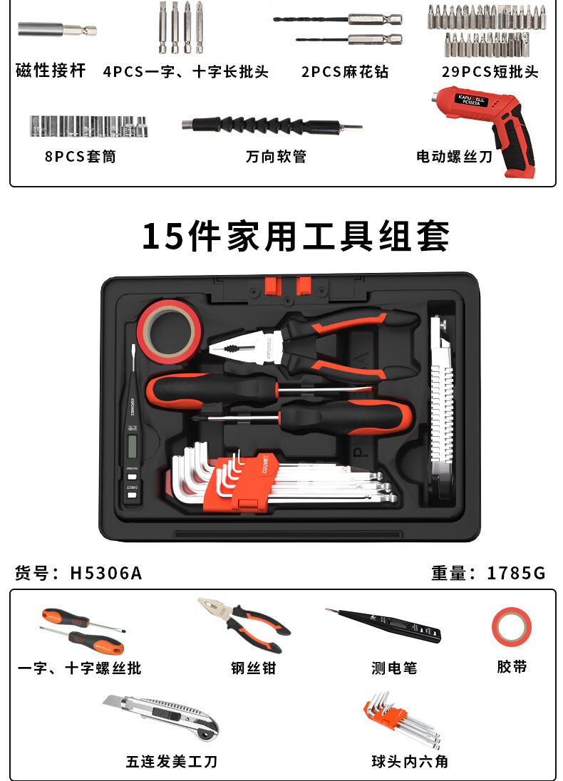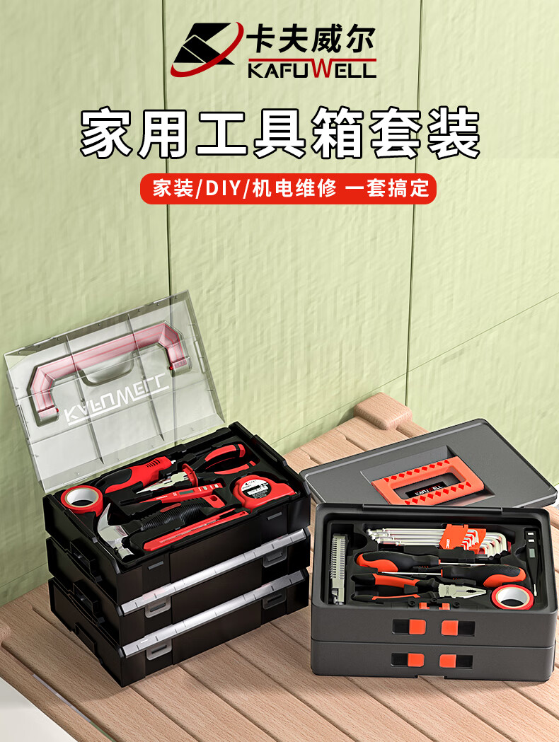 Kraftwell household multi-functional repair tool box basic household hardware tools 67 pieces three-layer household set H5444A