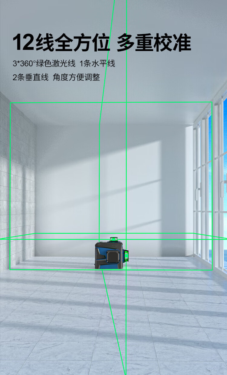 Dongcheng 12-line level meter FF-12LE2 remote-controlled green light wall-mounted meter high-precision strong light thin line battery *2