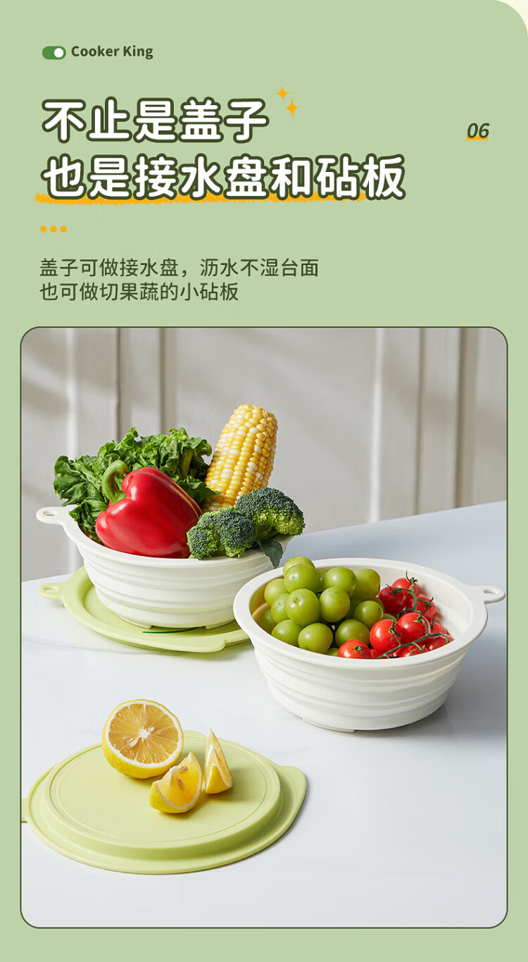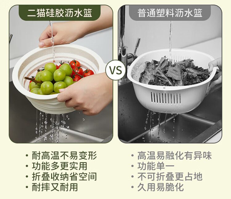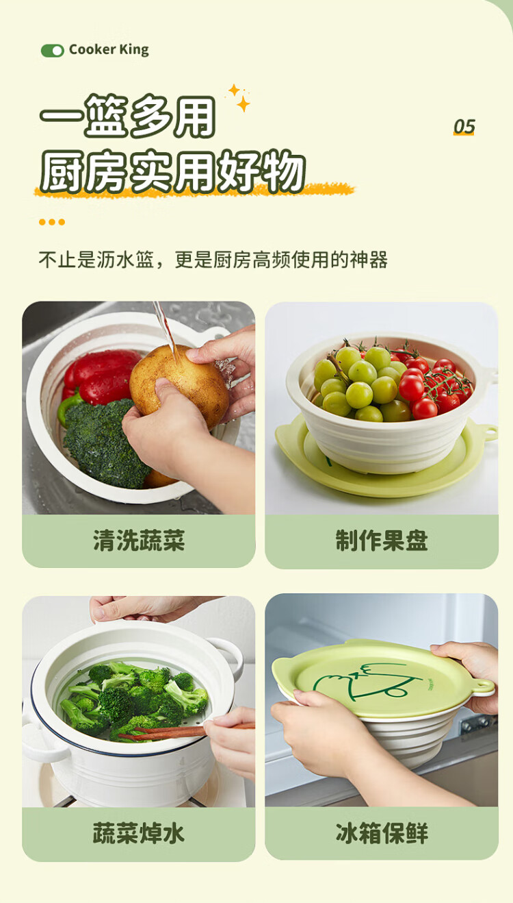 Cui Dahuang food-grade silicone drain basket household fruit plate kitchen water filter foldable multi-functional rice washing basin