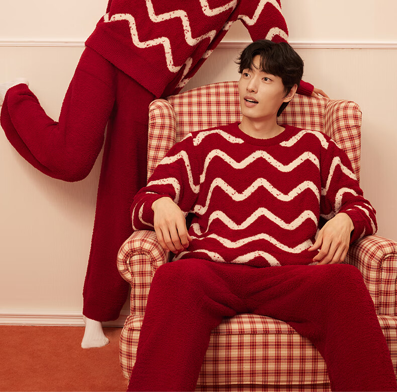 There is a tree in the year of the animal red women's pajamas for female couples in the year of the horse half-edge velvet autumn and winter anti-mite 2025 new home clothes set
