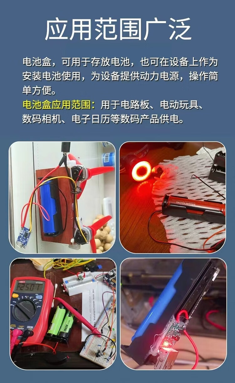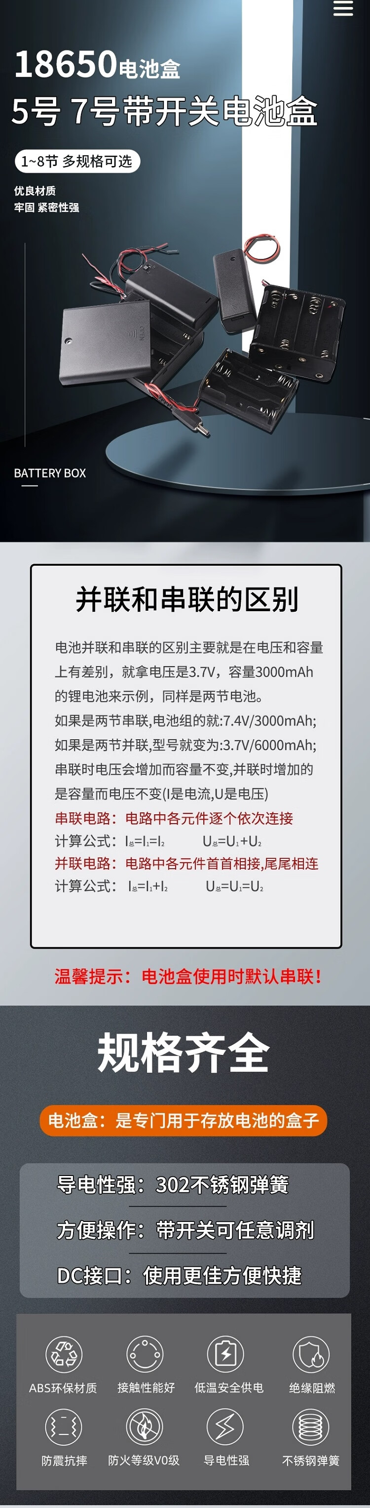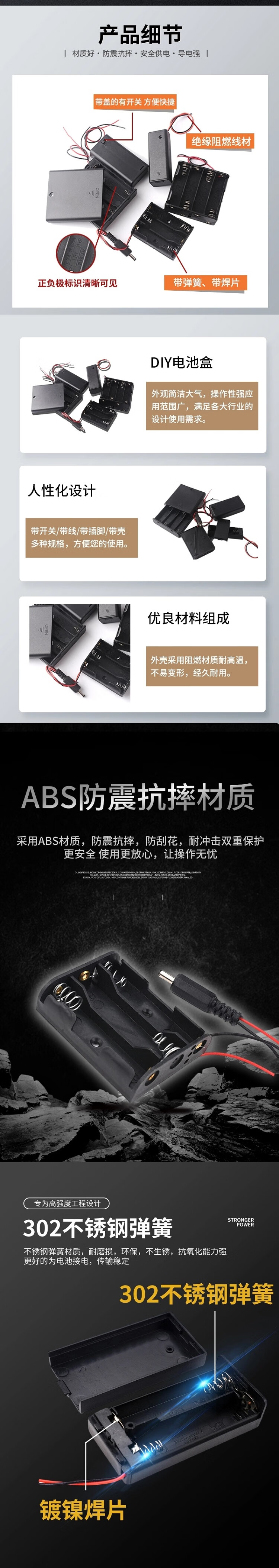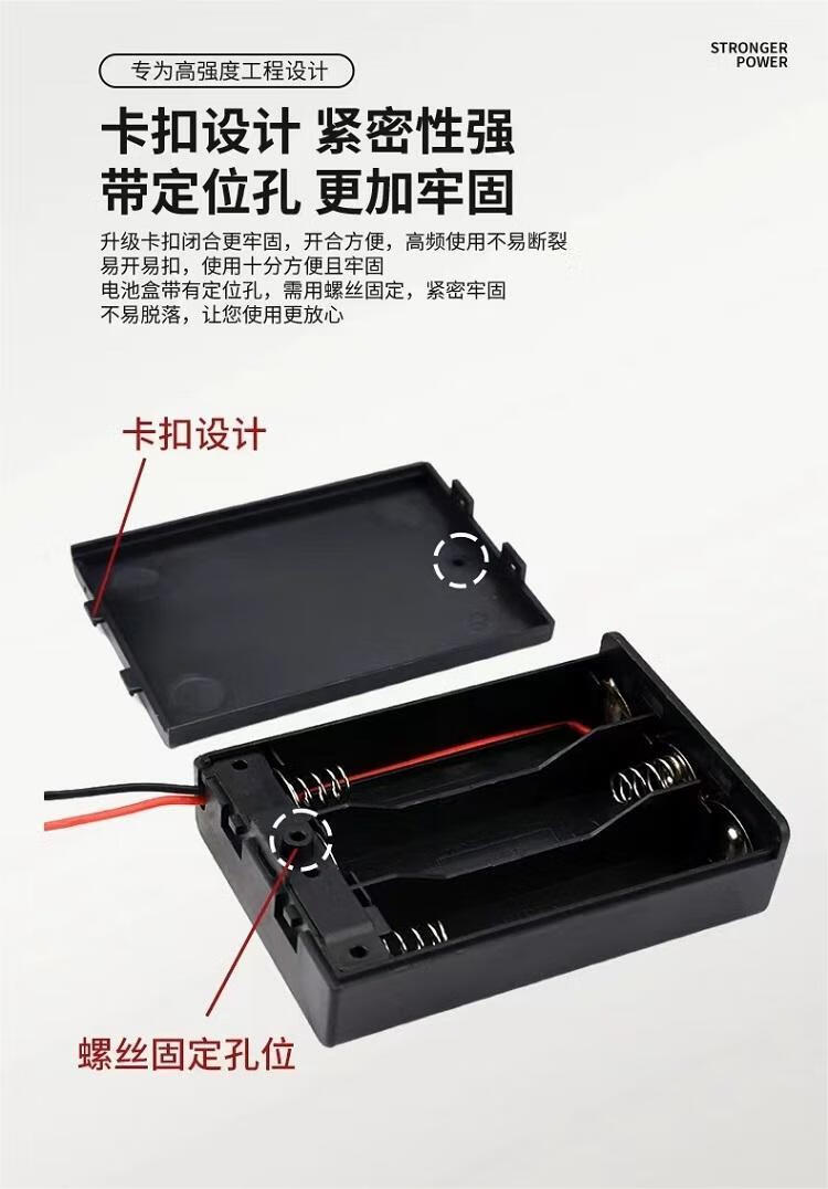 Noran 4-cell No. 7 battery box with cover and switch, with red and black wired battery holder, battery clip, battery holder