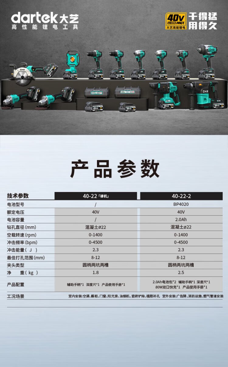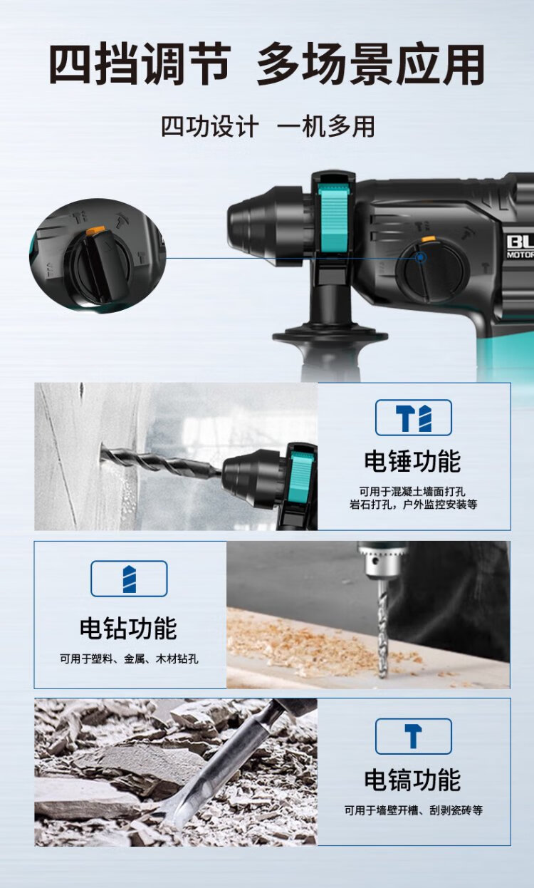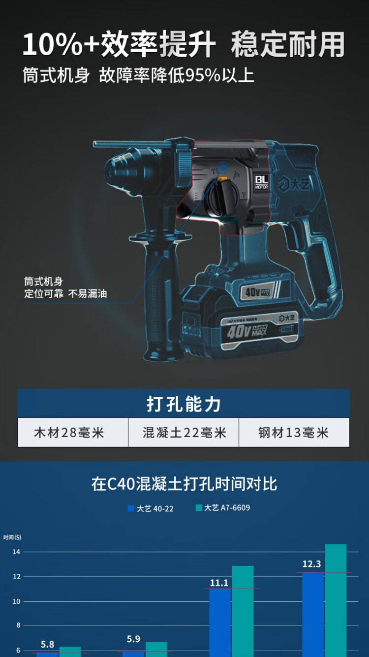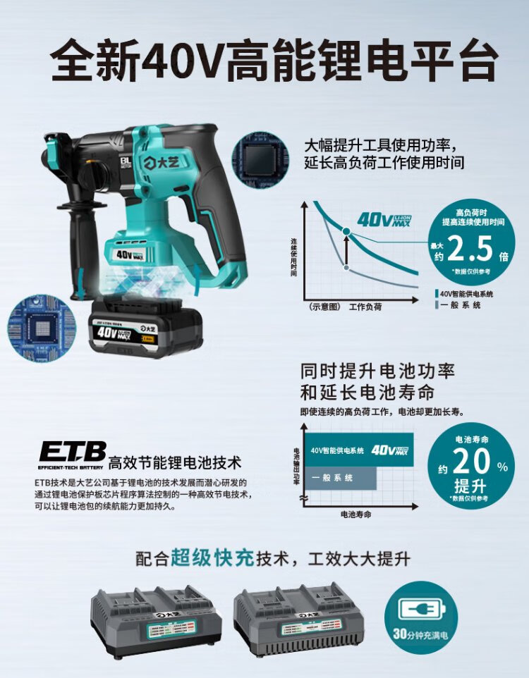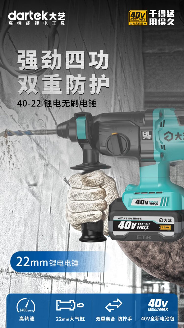 Dayi Electric Hammer 40-22-2 Brushless 40V Rechargeable Electric Hammer Electric Pickaxe Impact Drill Grooving Four Functions