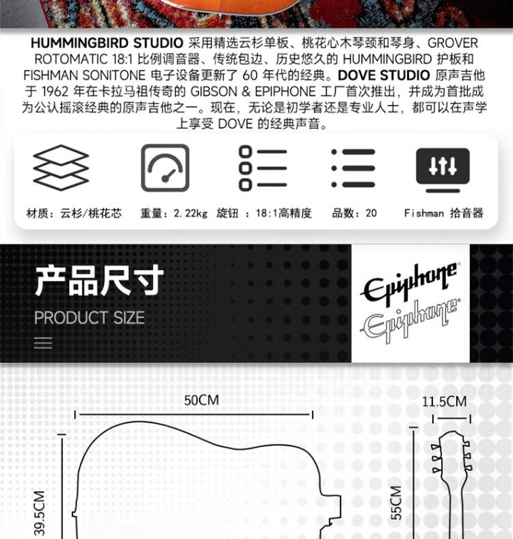 Epiphone Yi Pu Feng Hummingbird Studio EB Yaoye black folk electric box acoustic guitar domestically produced with bag American brand