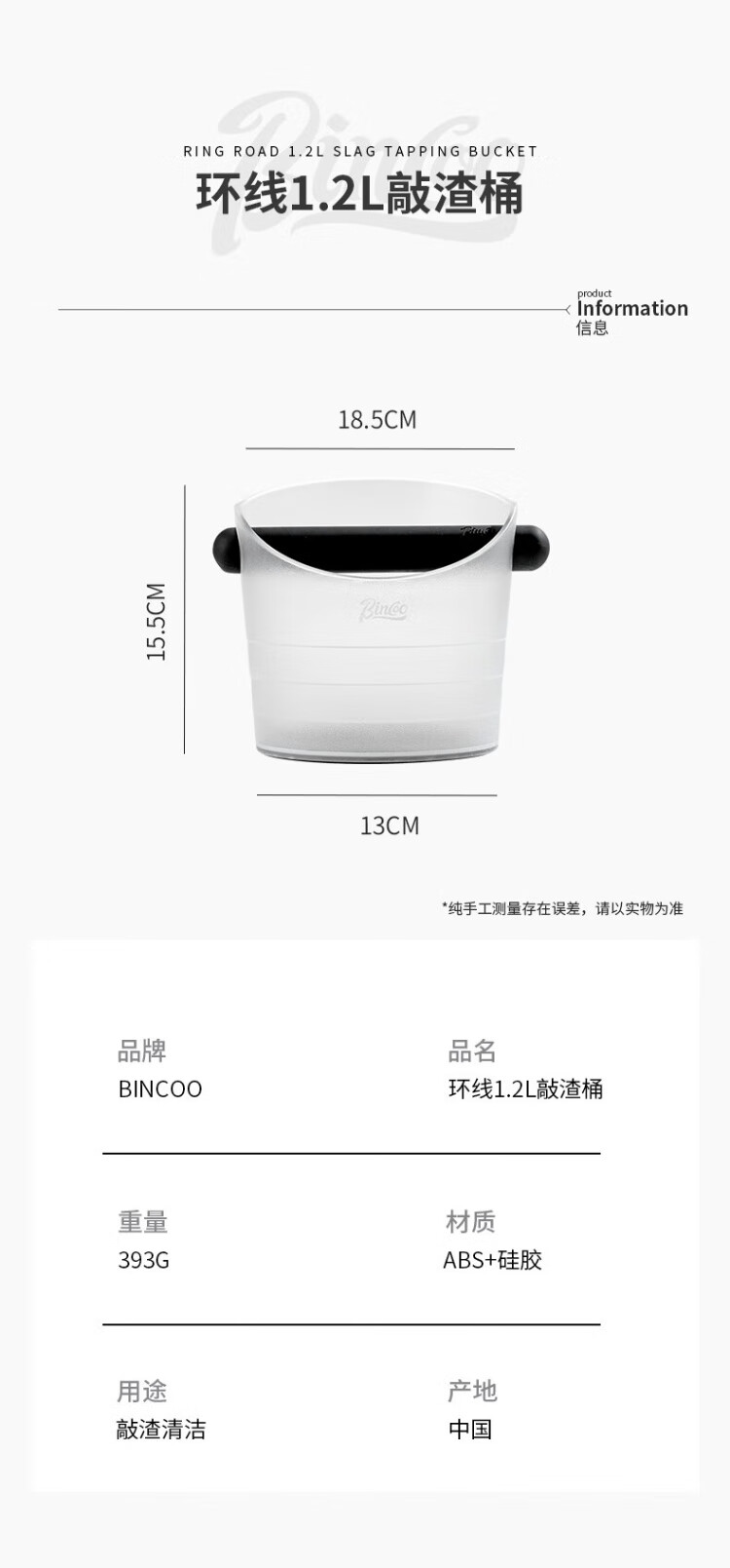 Bincoo coffee grounds bucket household Italian coffee large press powder knocking bucket with waste residue storage tool knocking powder bucket