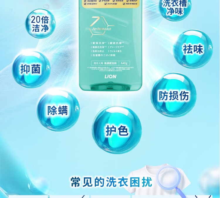 Lion Nanole Full-effect Deep Purifying Concentrated Laundry Detergent 640g 20 times the cleaning power, odor removal, color protection, mite removal, antibacterial laundry detergent