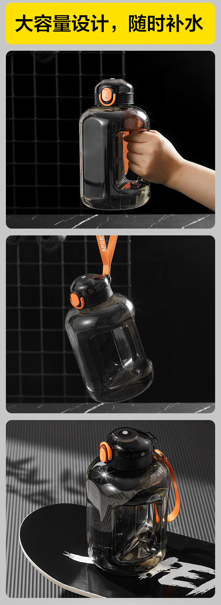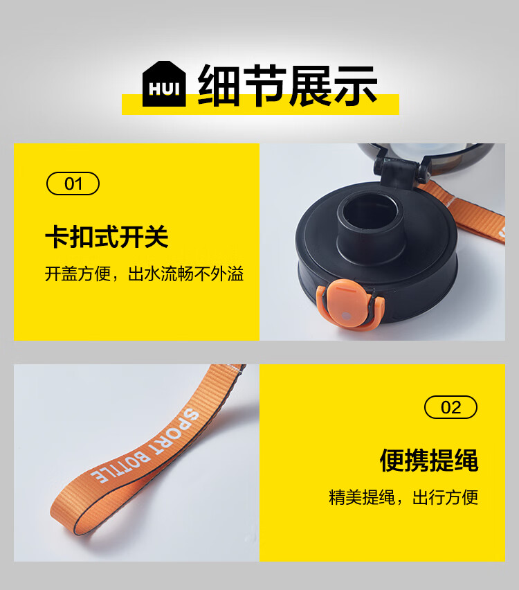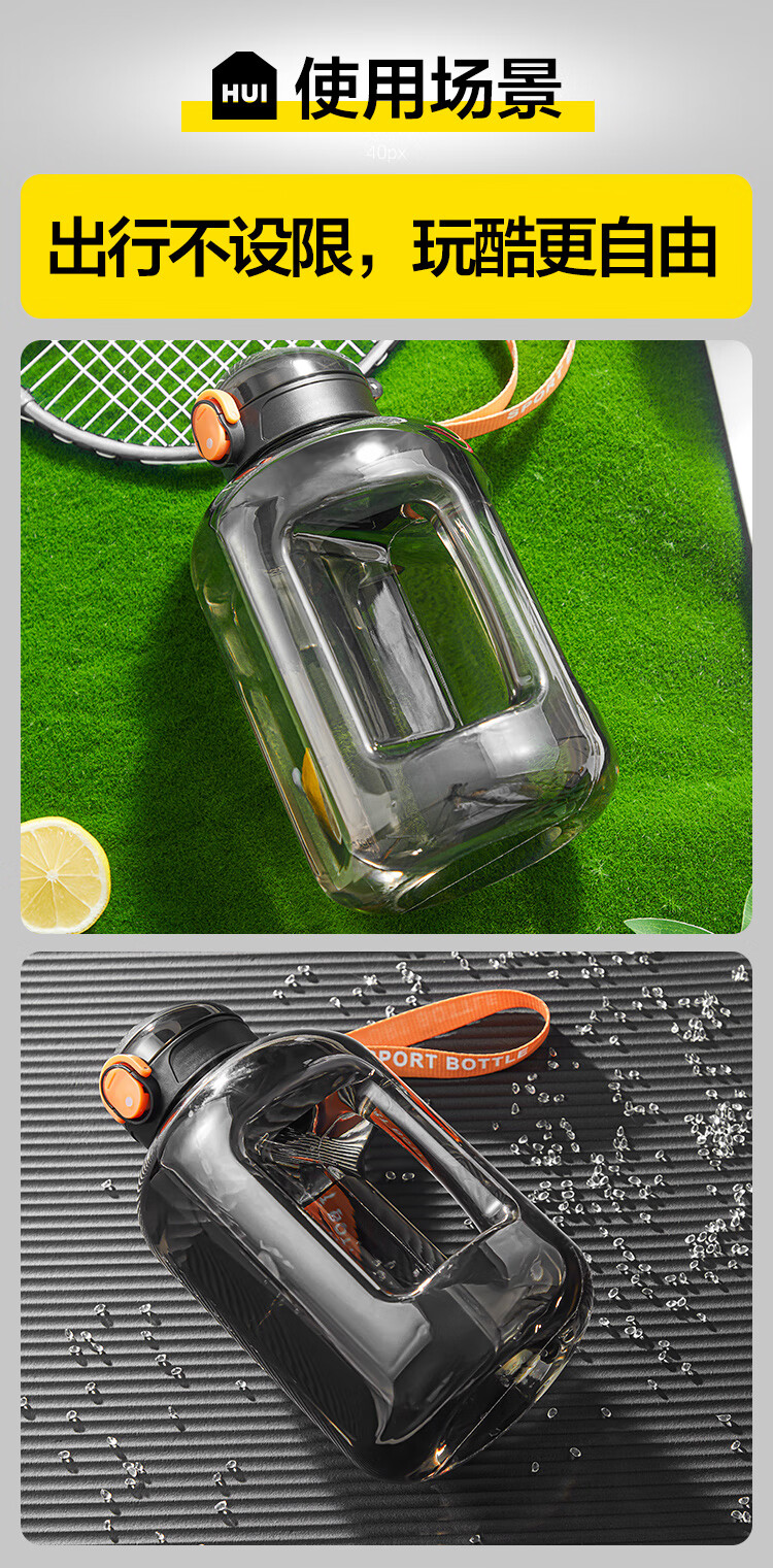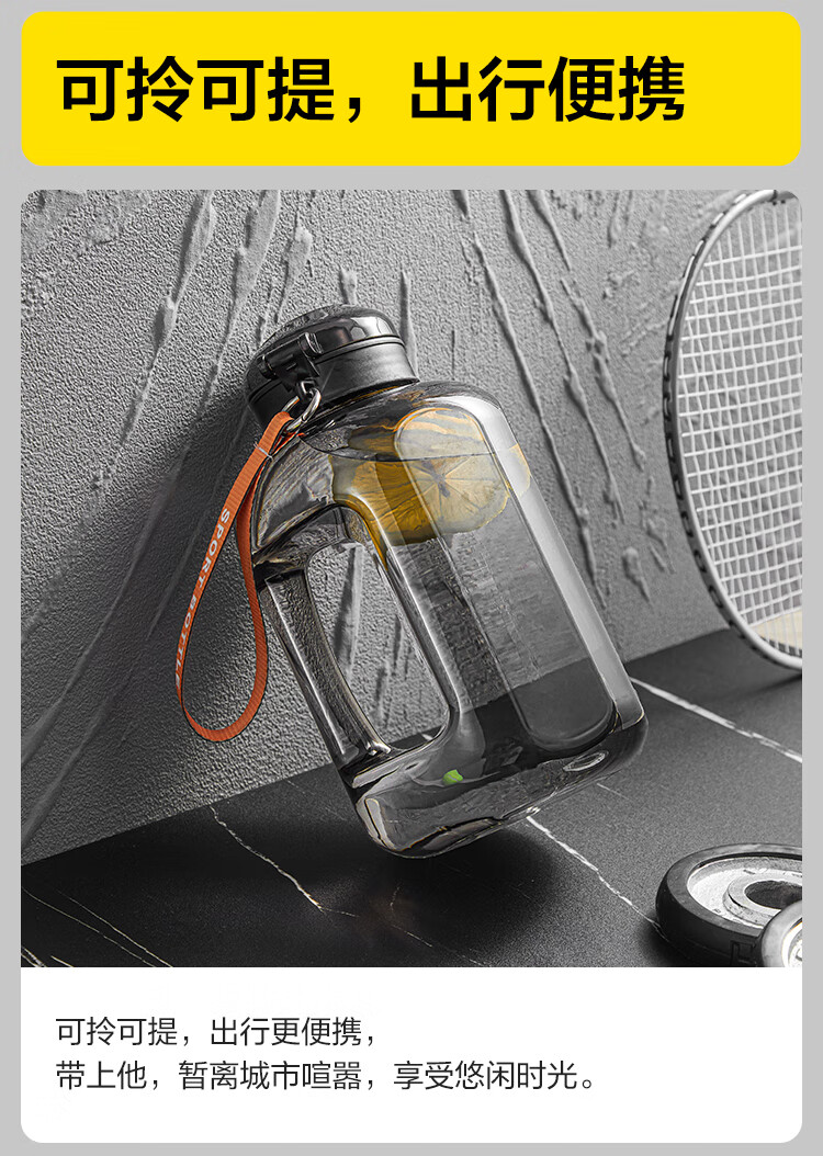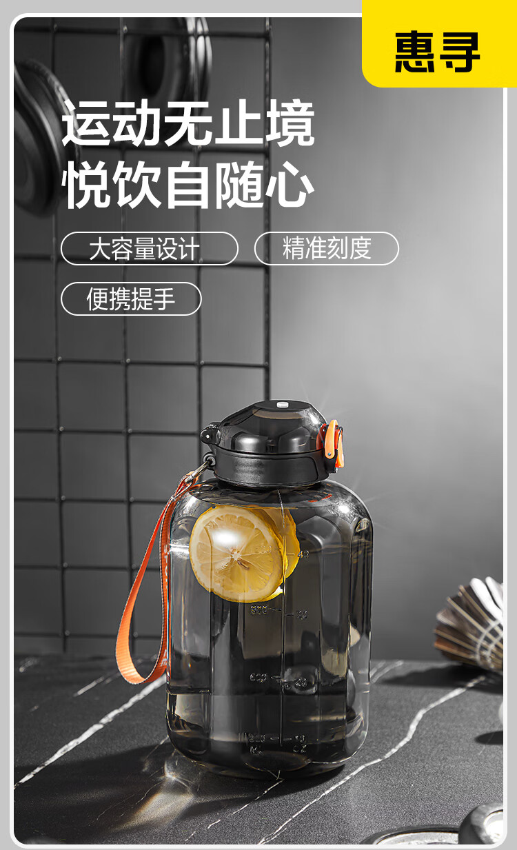 Huixun Jingdong's own brand large-capacity plastic water cup sports fitness kettle outdoor ton bucket matte black 1.2L