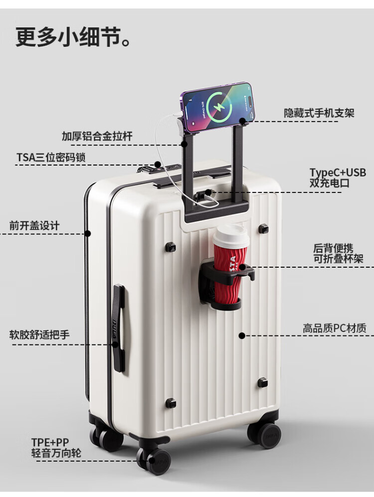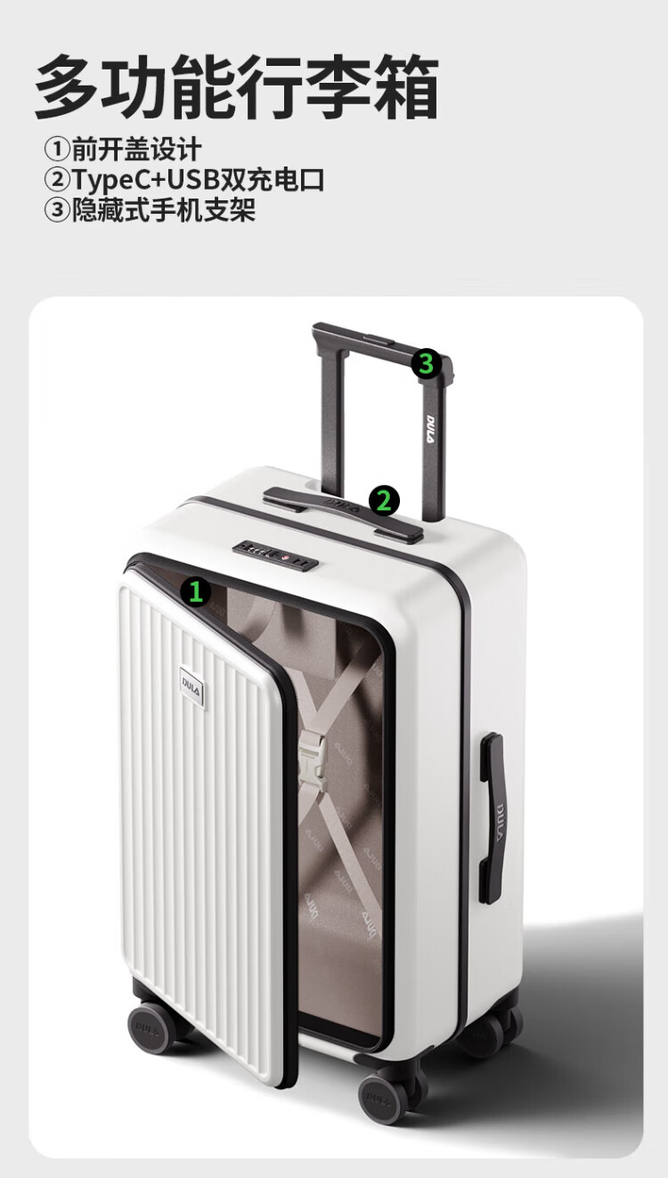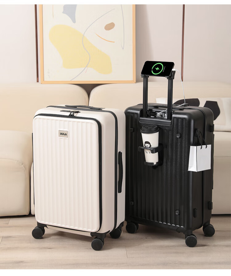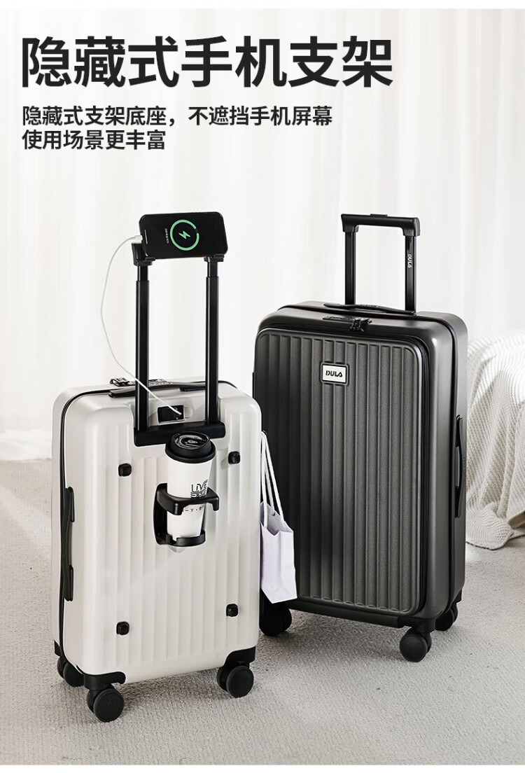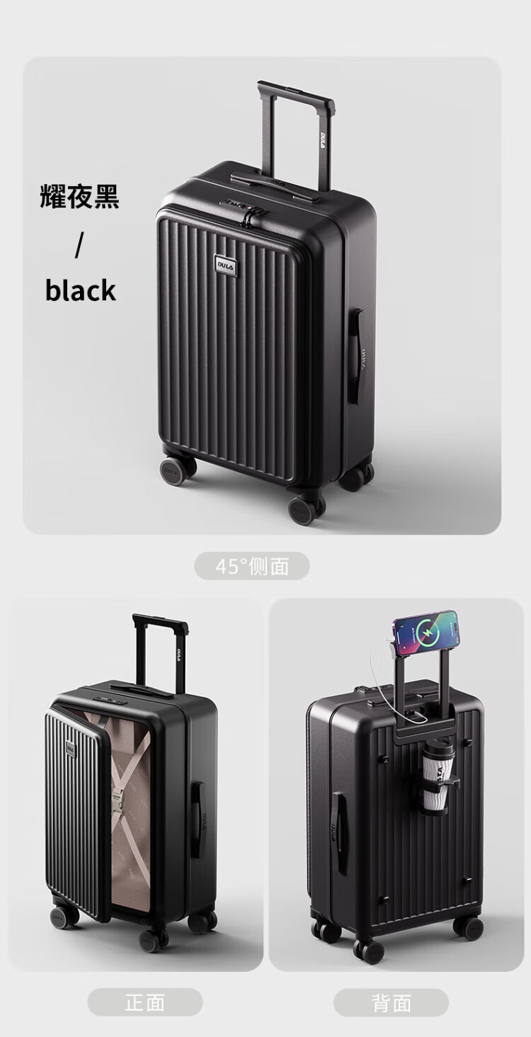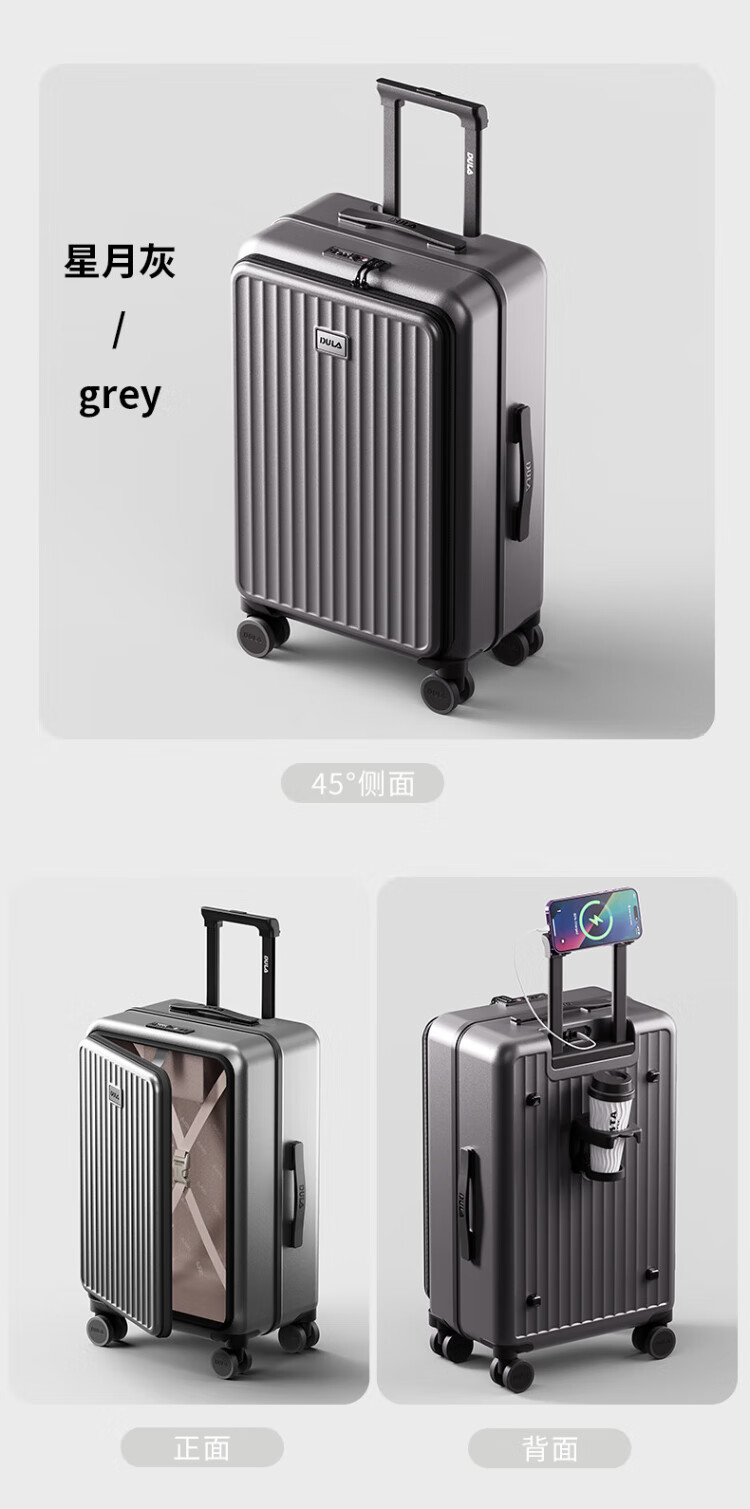 DULA side-opening multifunctional suitcase large capacity business trolley case men and women travel code box starry sky gray 20 inches