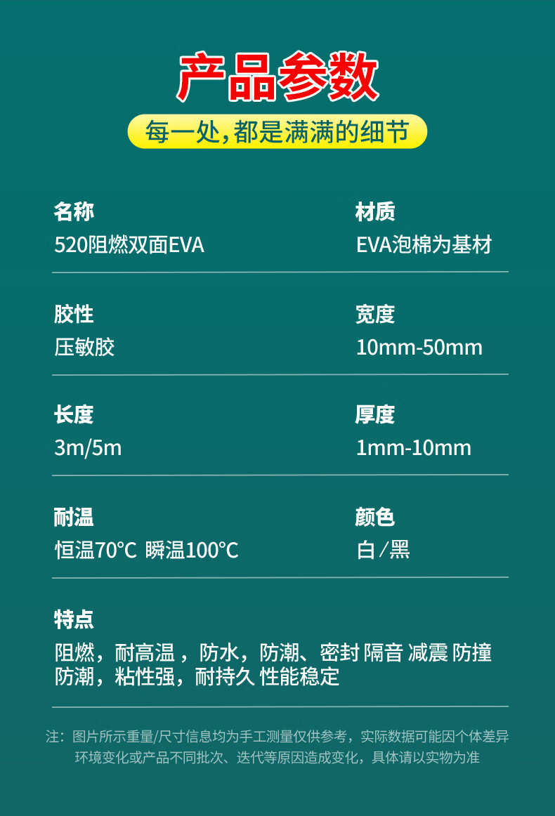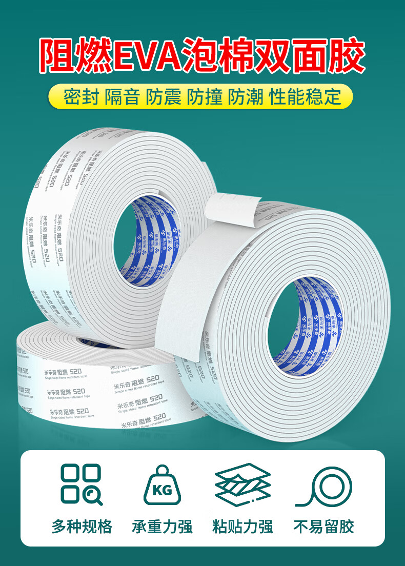 Mileqi flame-retardant EVA foam double-sided tape with high viscosity and strong fixed wall thickening for vehicles without leaving any traces 3mm thick white 10mm wide * 5m long - 2 rolls