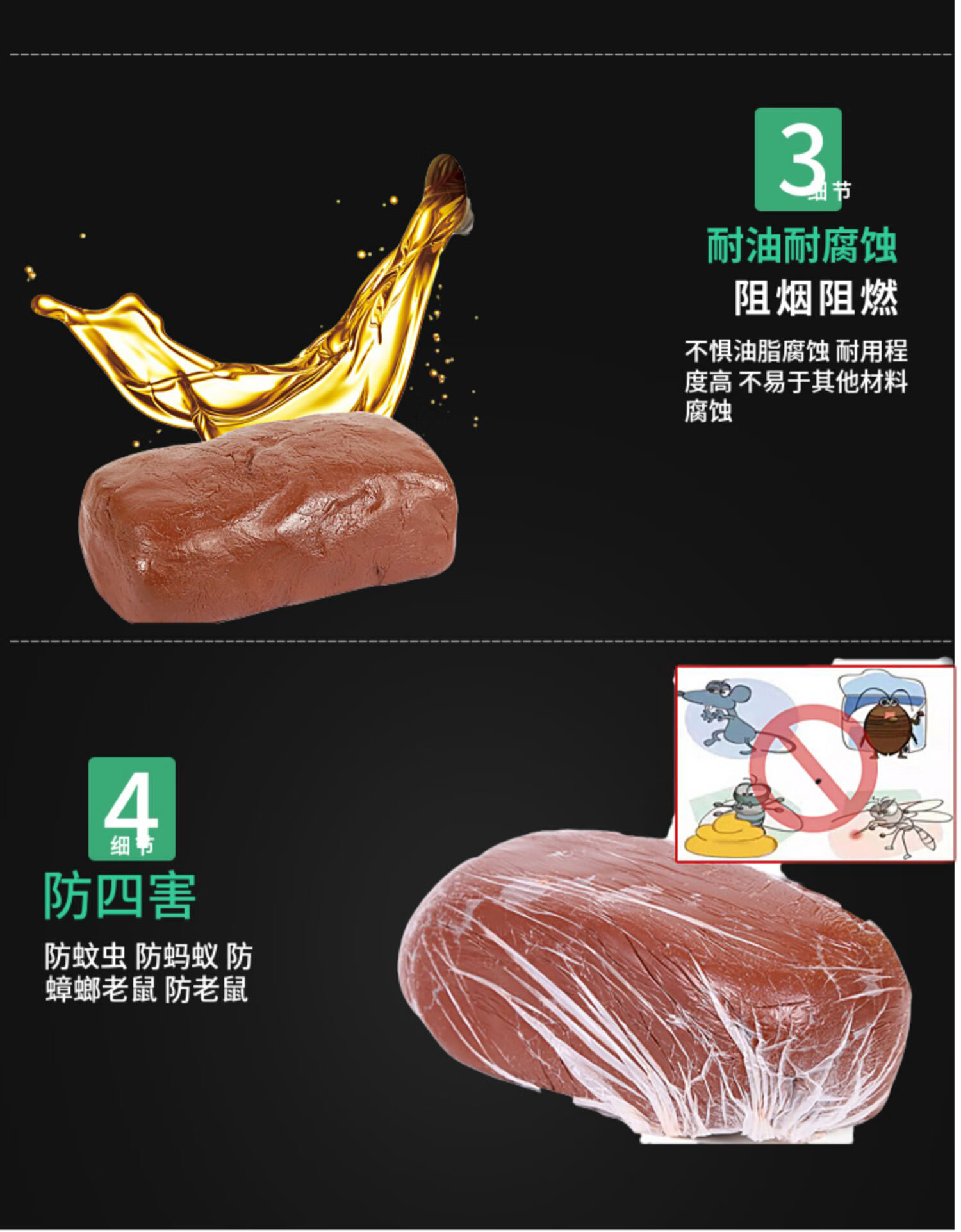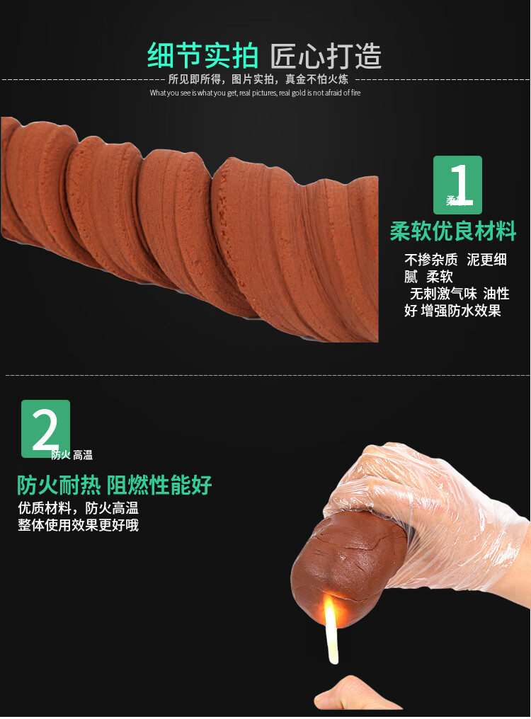 Cast solid fireproof mud high temperature resistant flame retardant cable organic fireproof plugging material flue air conditioning sealing mud 2kg